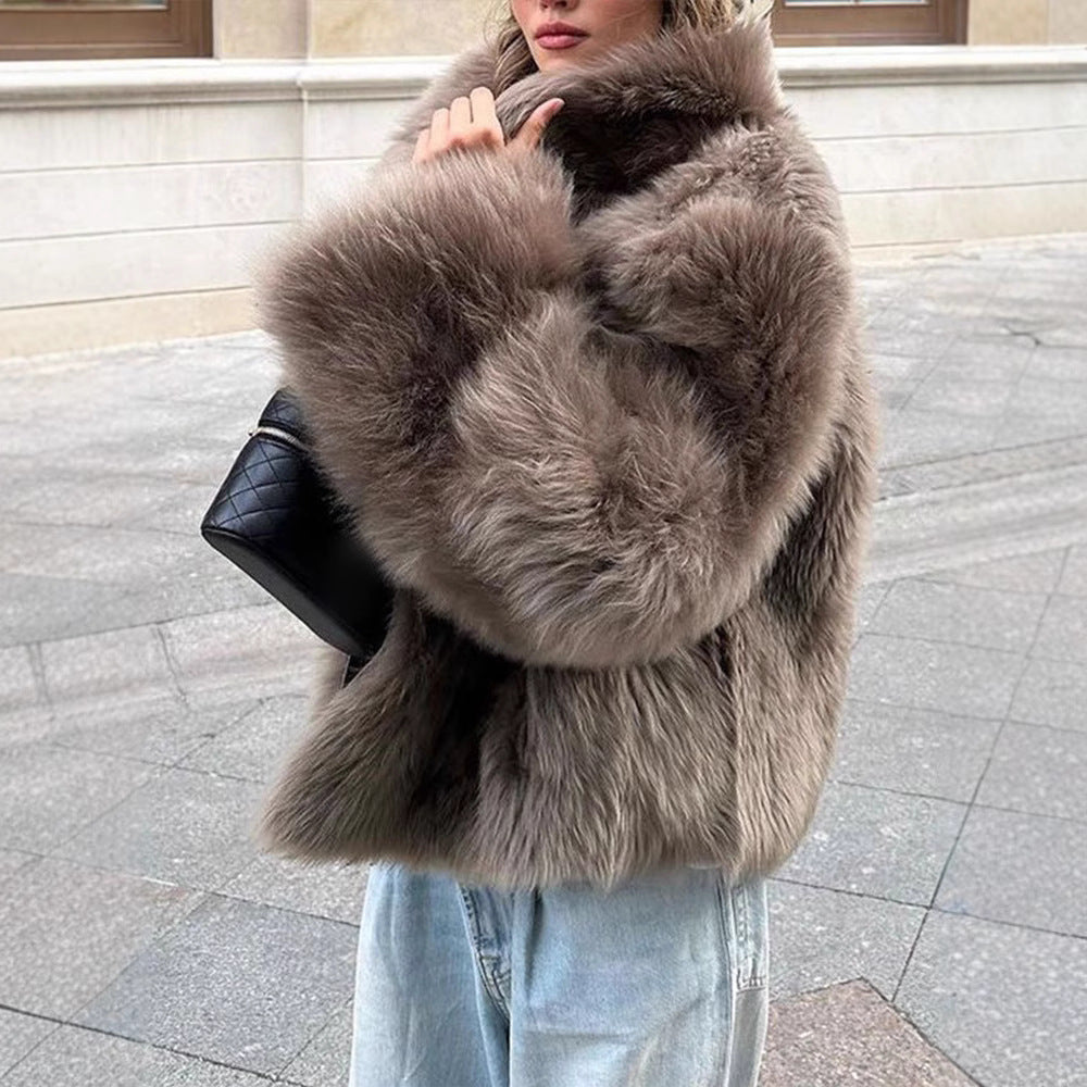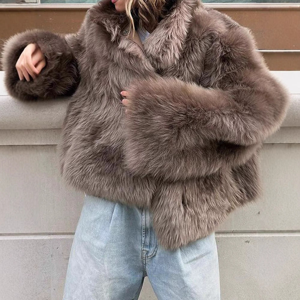 Ladies Short Faux Fur Coat with Large Collar Chic and Style