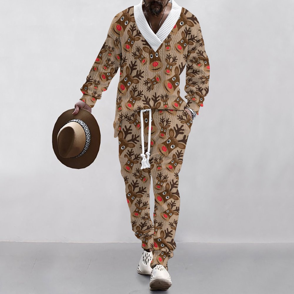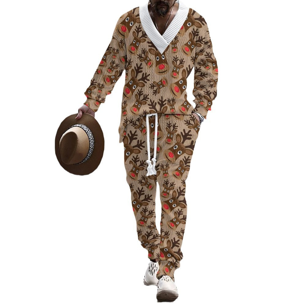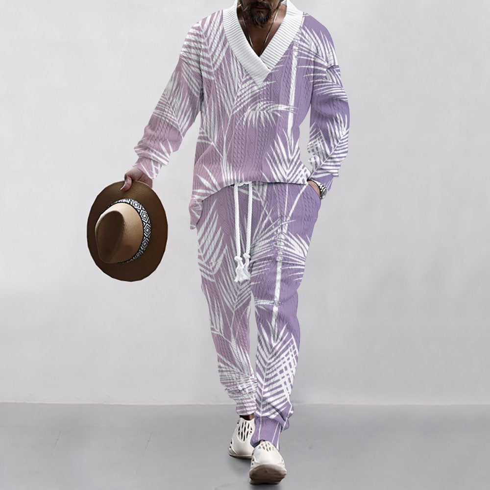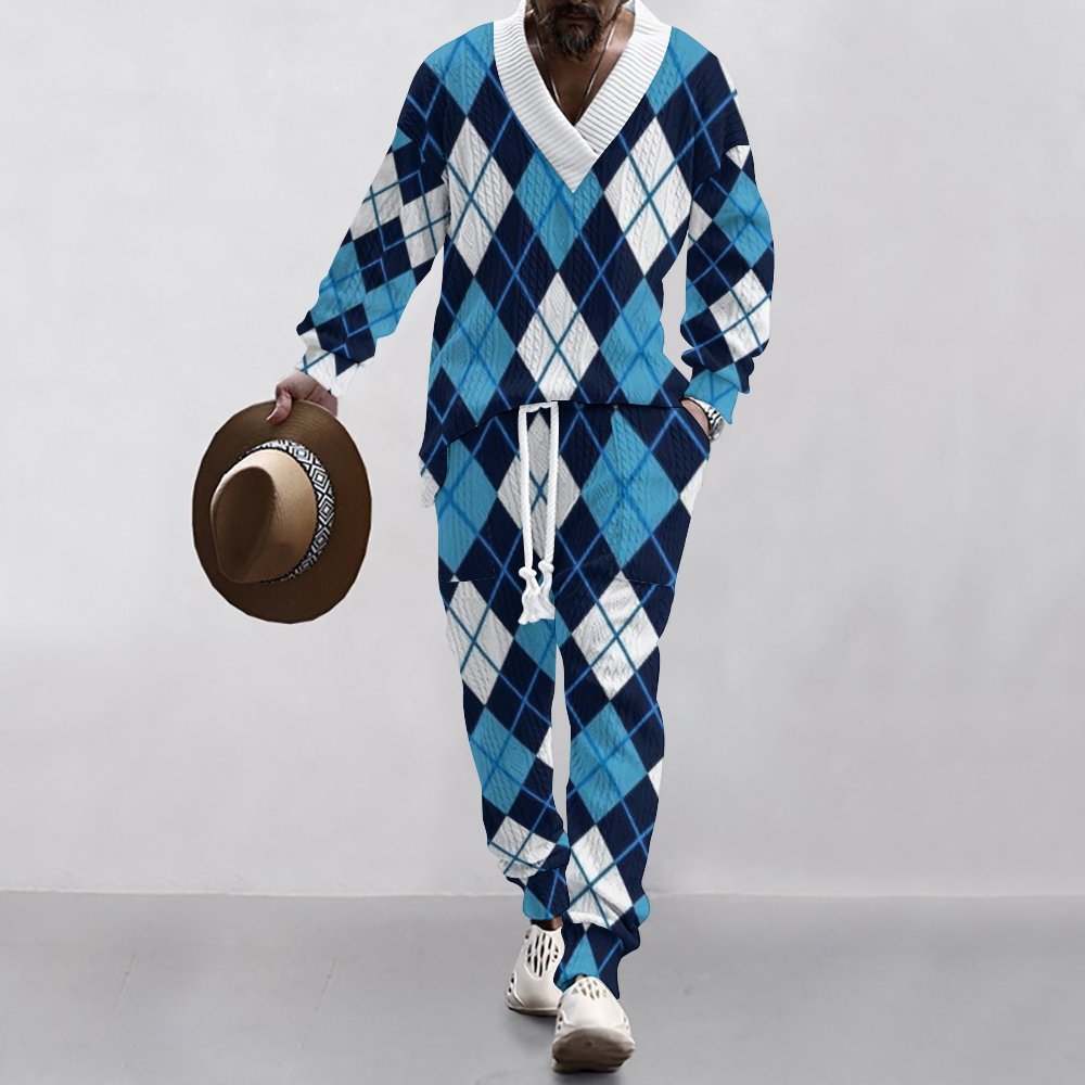 Navy knit sweater for men with a unique anchor pattern and comfortable pants Chic und Stil