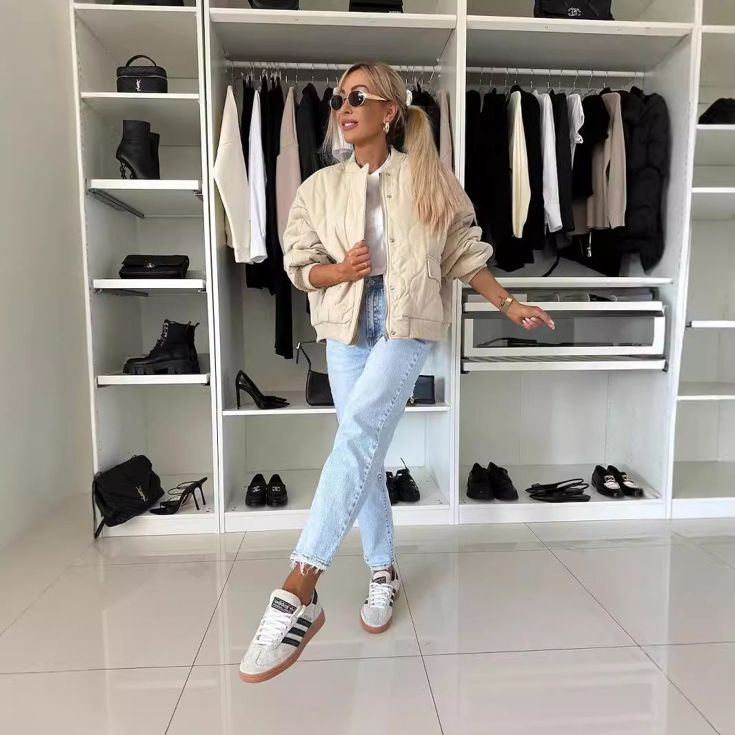 Ladies oversized casual quilted jacket with ribbed knit details Chic und Stil
