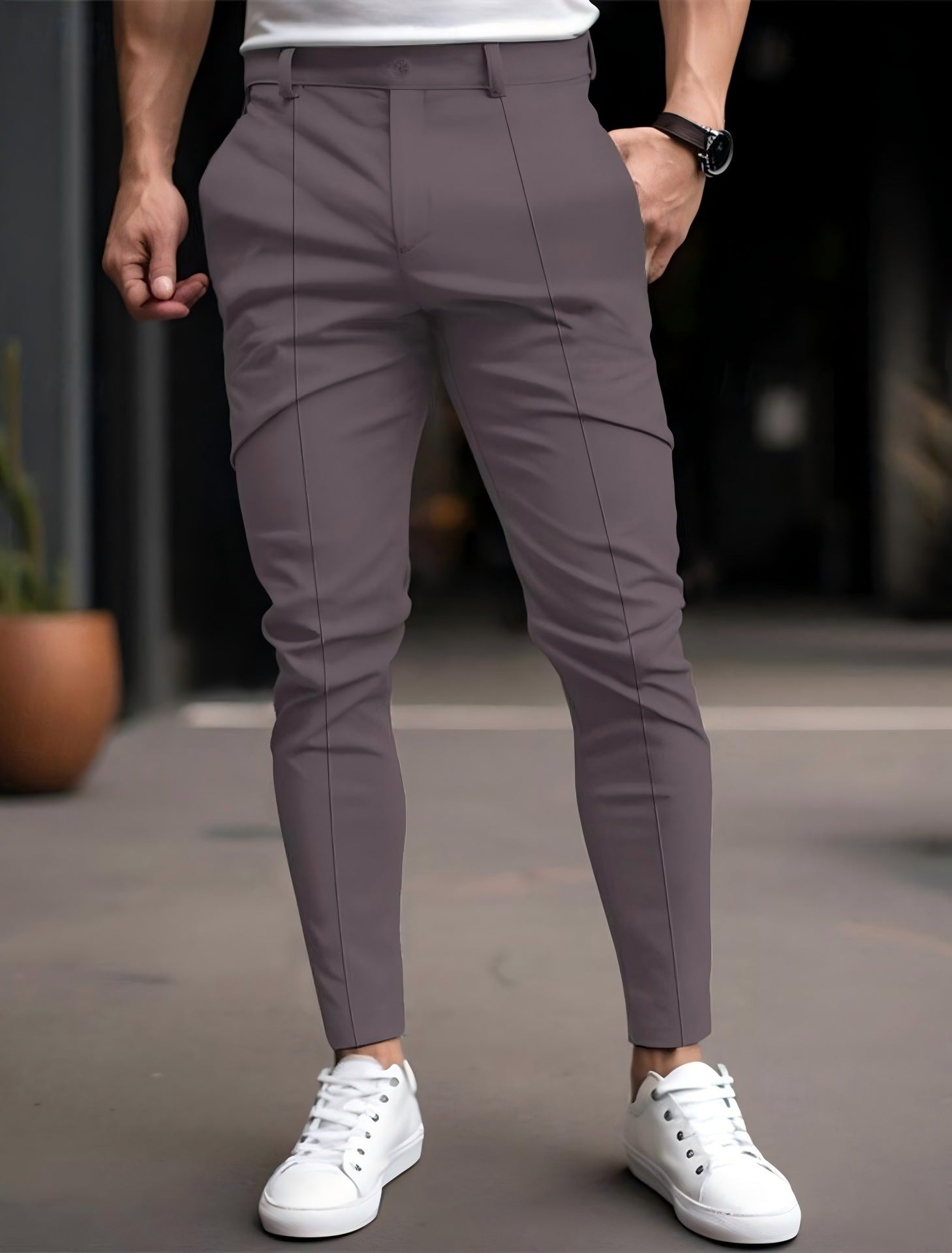 Pantalon chino slim-fit à la mode pour hommes avec taille élastique et poches polyvalentes Chic und Stil