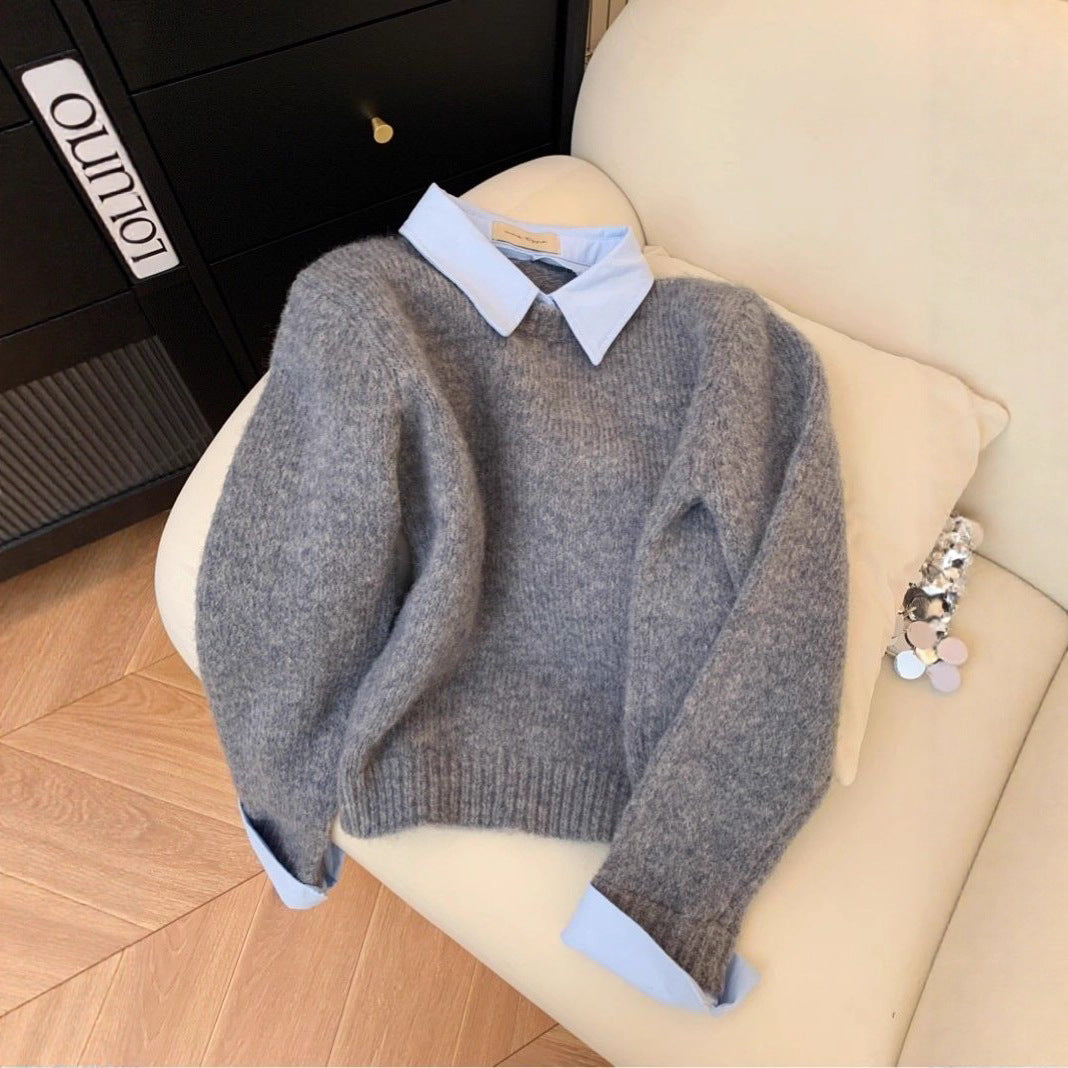 Pull tendance pour femmes avec combinaison de col de chemise intégré Chic & Stil