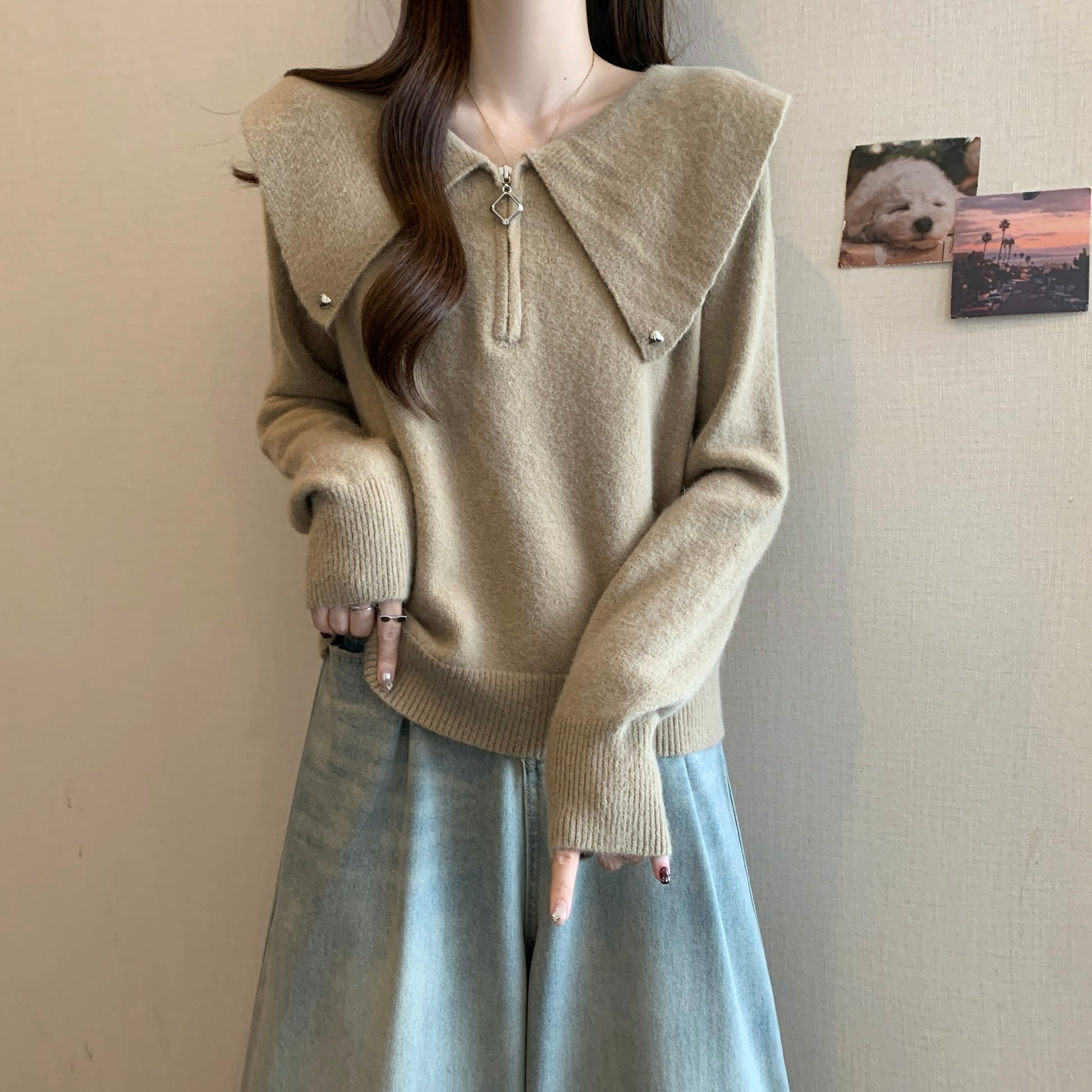 Dames pull tendance avec fermeture éclair originale et grand col Chic und Stil