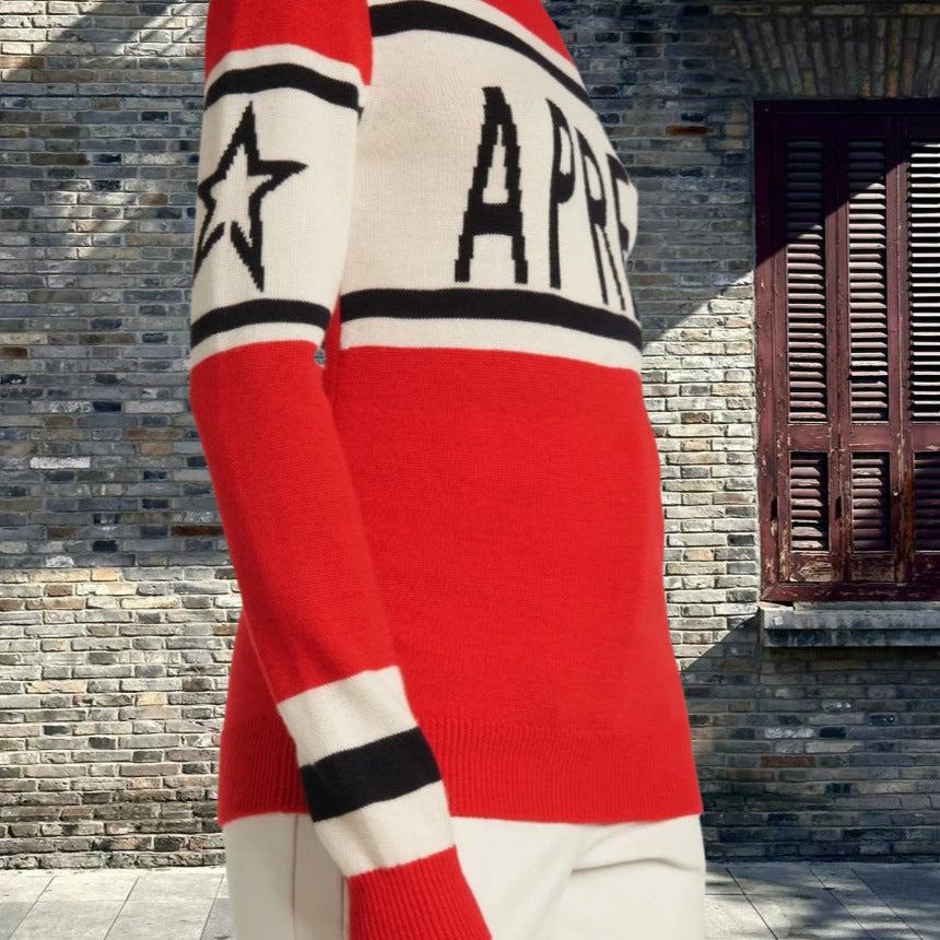 Découvrez le style parfait pour la saison froide avec notre pull en tricot tendance, qui allie confort et élégance. Le pull se distingue par un col haut qui offre une chaleur optimale et un motif accrocheur qui attire immédiatement l'œil et donne une touche sportive à n'importe quelle tenue.