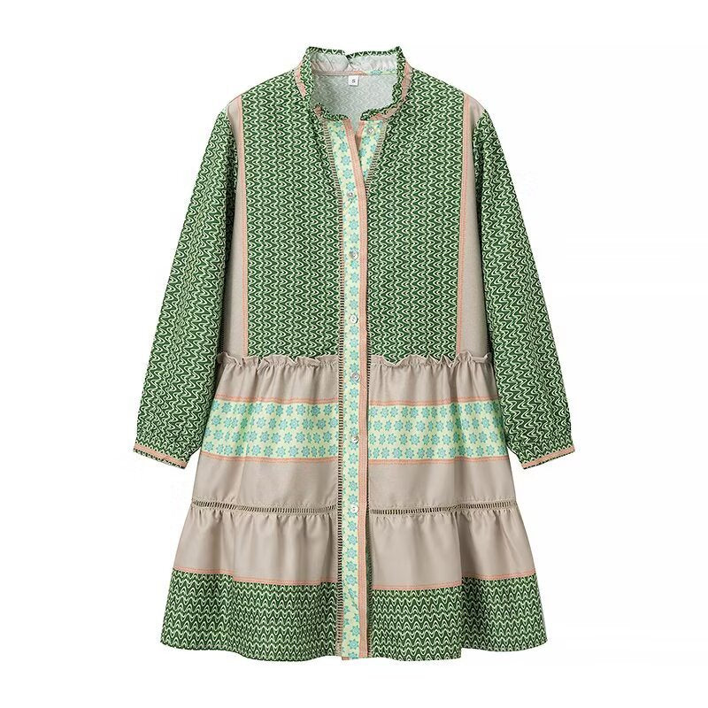 Robe chemise à manches longues pour femmes avec un motif élégant et un ourlet à volants Chic und Stil
