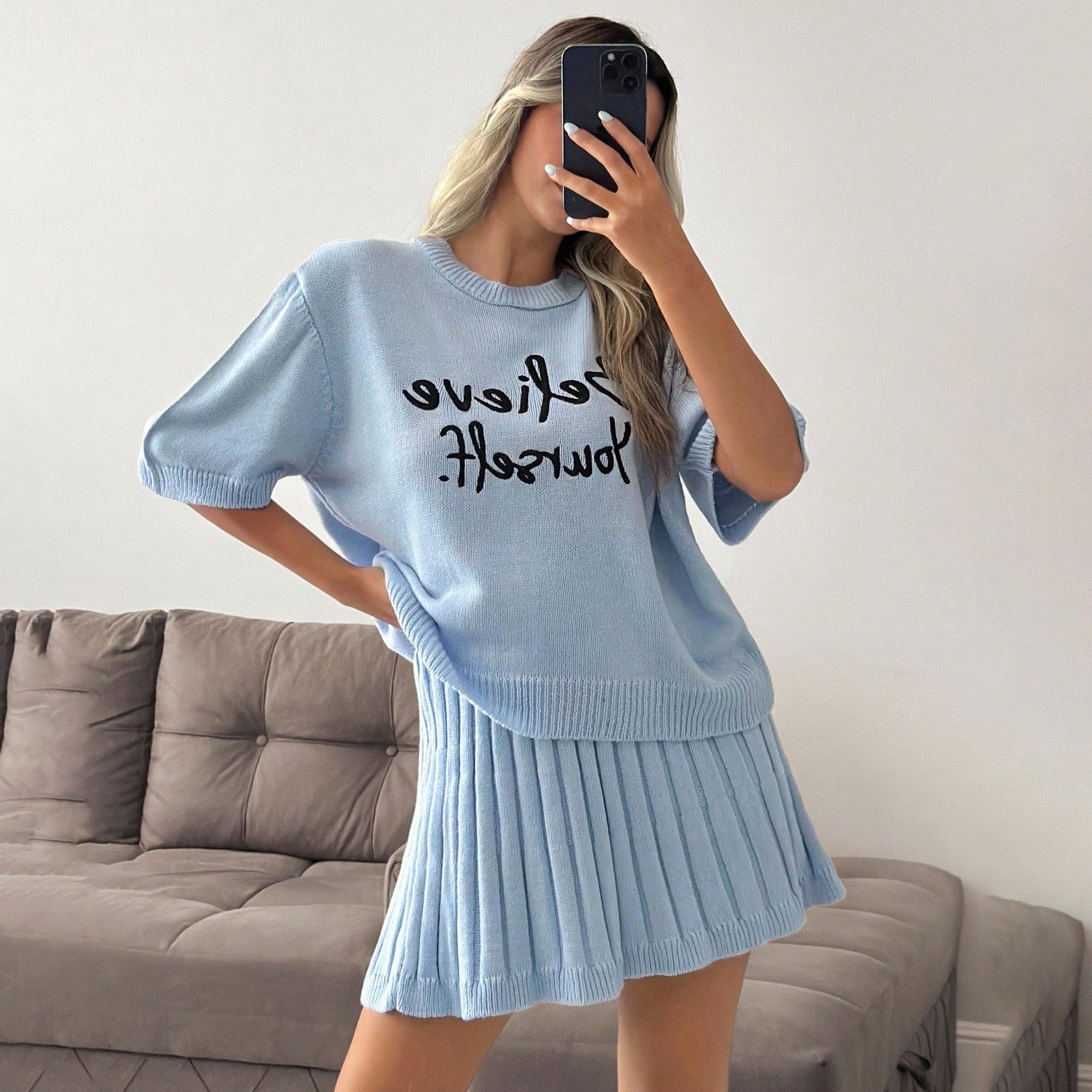 Découvrez notre élégant robe tricotée pour femmes avec un jupe plissée unique et un imprimé graphique. Cette robe allie style à la mode et confort, et est parfaite pour diverses occasions.