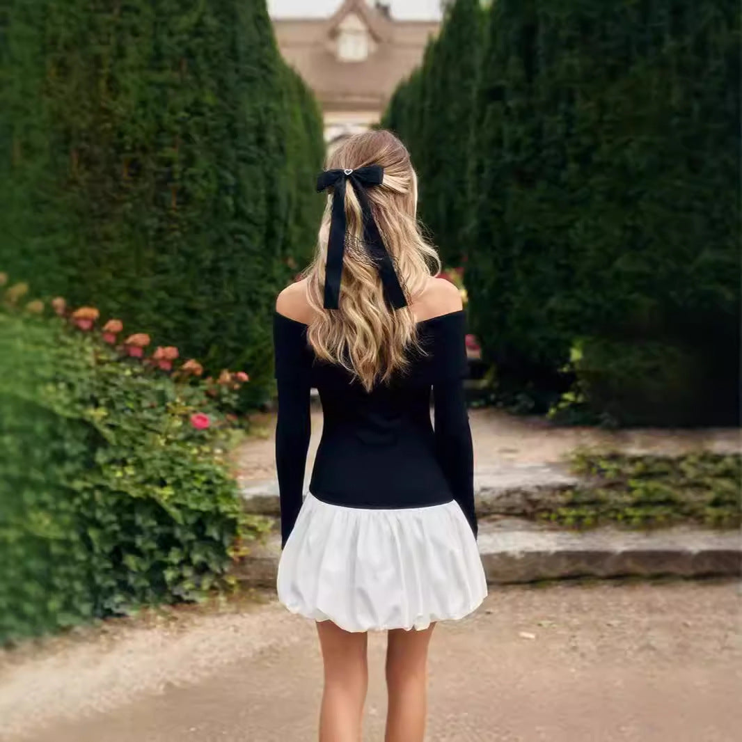 Robes Mini Off-Shoulder pour Femmes avec Manches Longues et Ourlet Froncé Élégant Chic und Stil