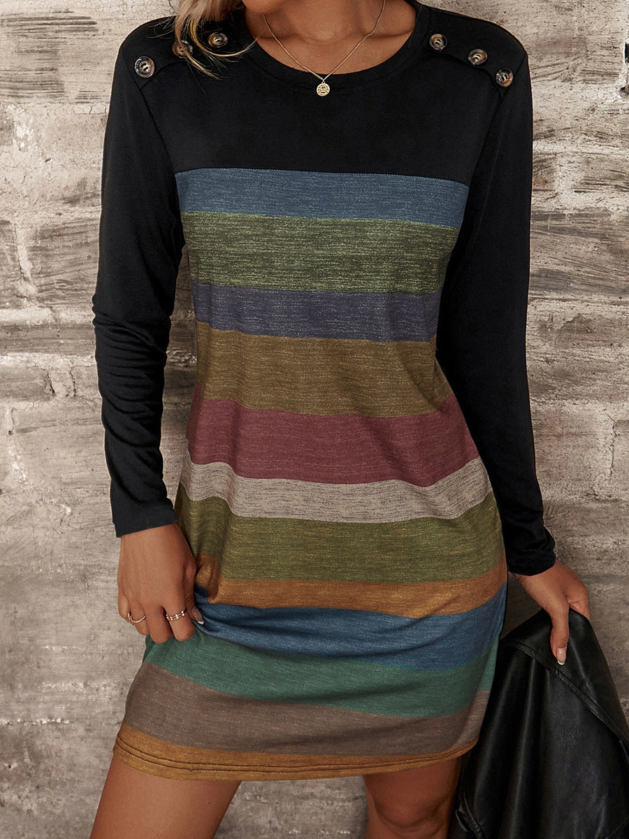 Robe rayée confortable pour dames avec détails de boutons Chic und Stil