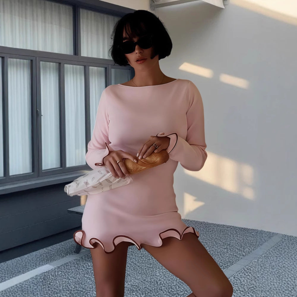 Découvrez notre élégant mini-robe pour femme, la tenue parfaite pour chaque occasion. Cette robe à la mode se distingue par son ourlet en forme de vague innovant et ses élégantes manches longues qui créent une silhouette stylée.