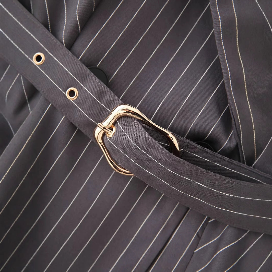 Striped blazers jacket for women with a defined waist and an elegant belt Chic and Style