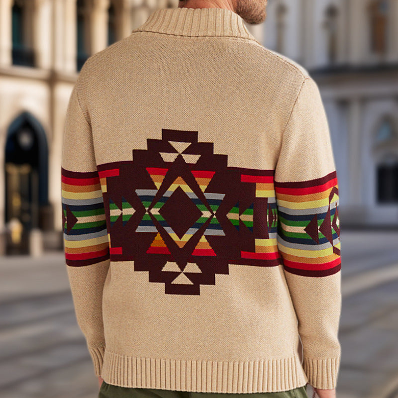 Men's knitted jacket with colorful patterns and a comfortable shawl collar Chic and Style