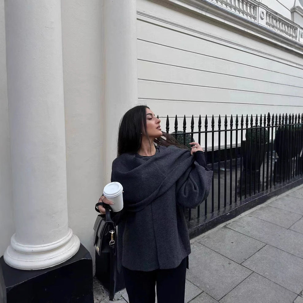 Discover our asymmetrical wrap jacket for women with a large collar from Chic und Stil, known for its unique style and comfort. This jacket stands out with its modern design and relaxed fit that elevates any look.