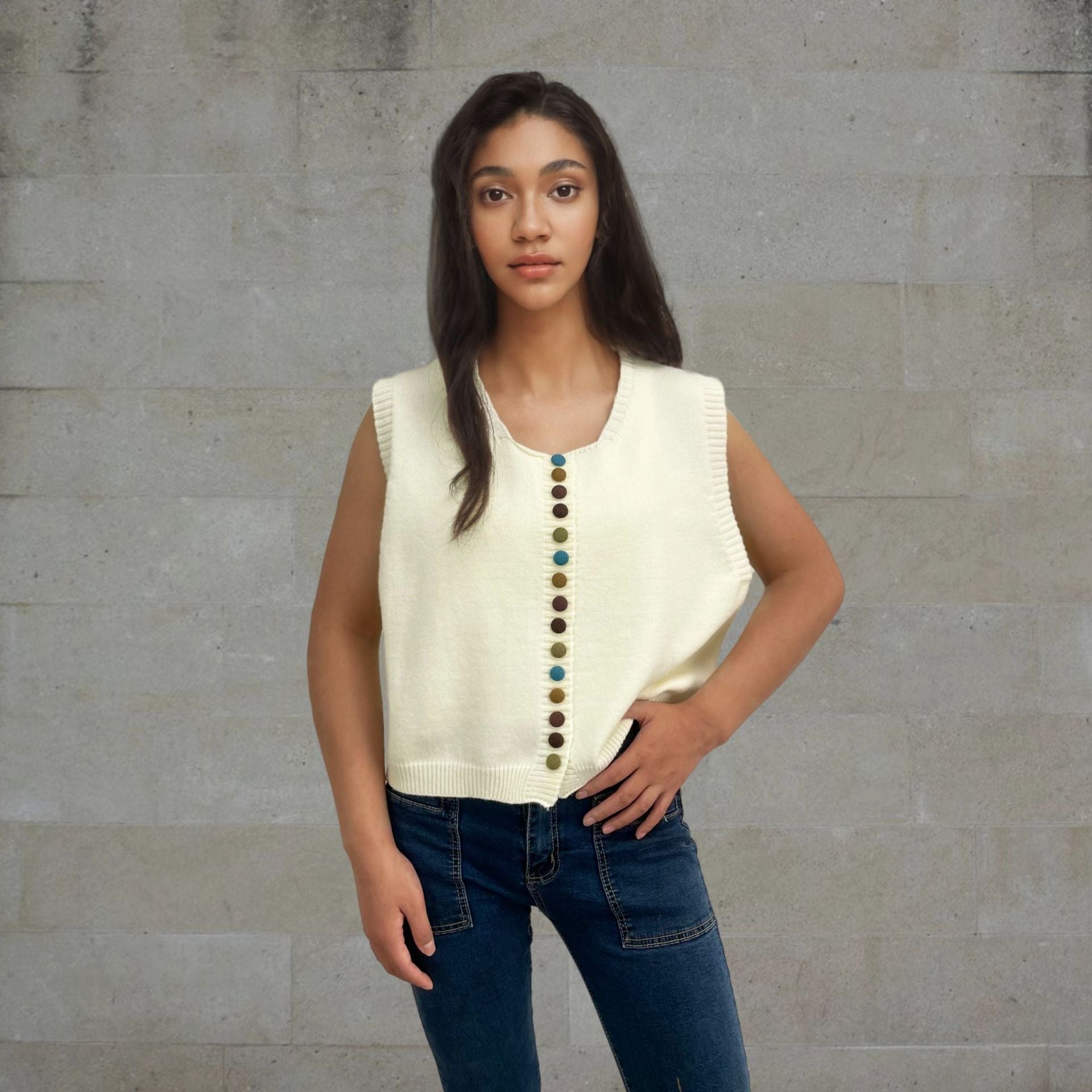 Ladies sleeveless knit vest with decorative buttons Chic and Style