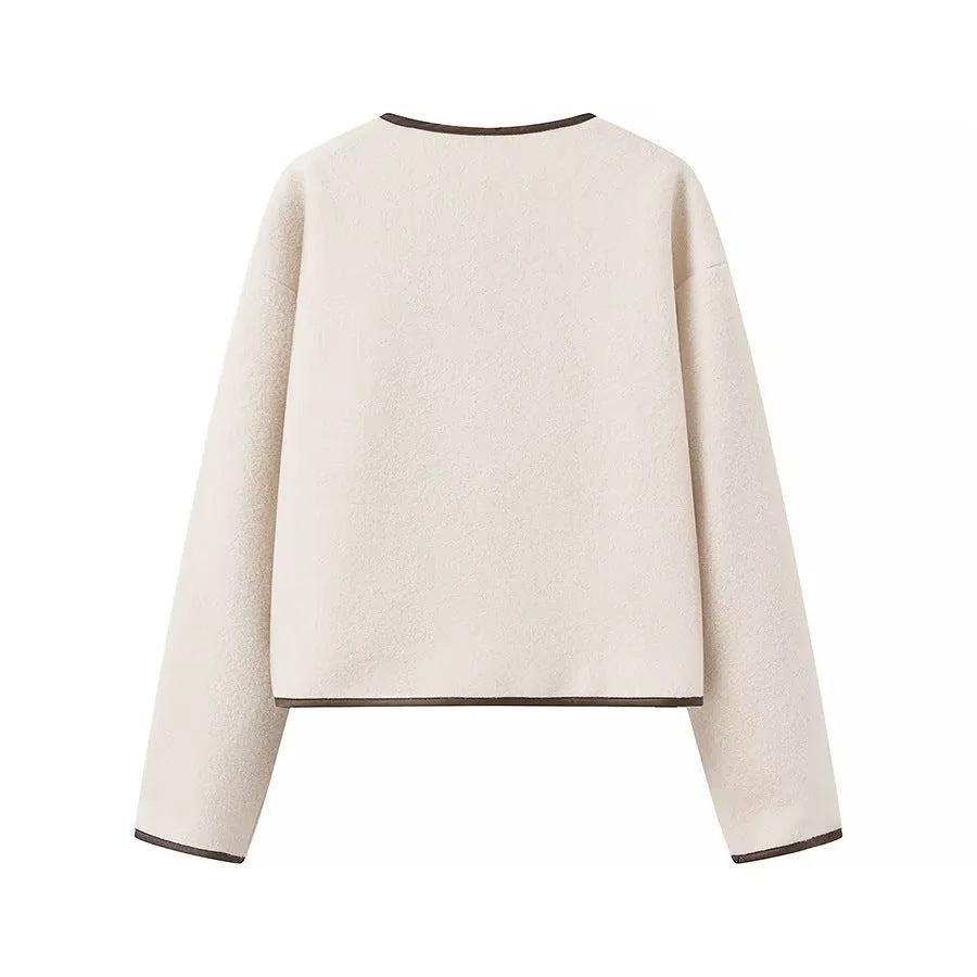 • Design: The jacket features a stylish round collar and a chic tie, allowing for a personalized fit.