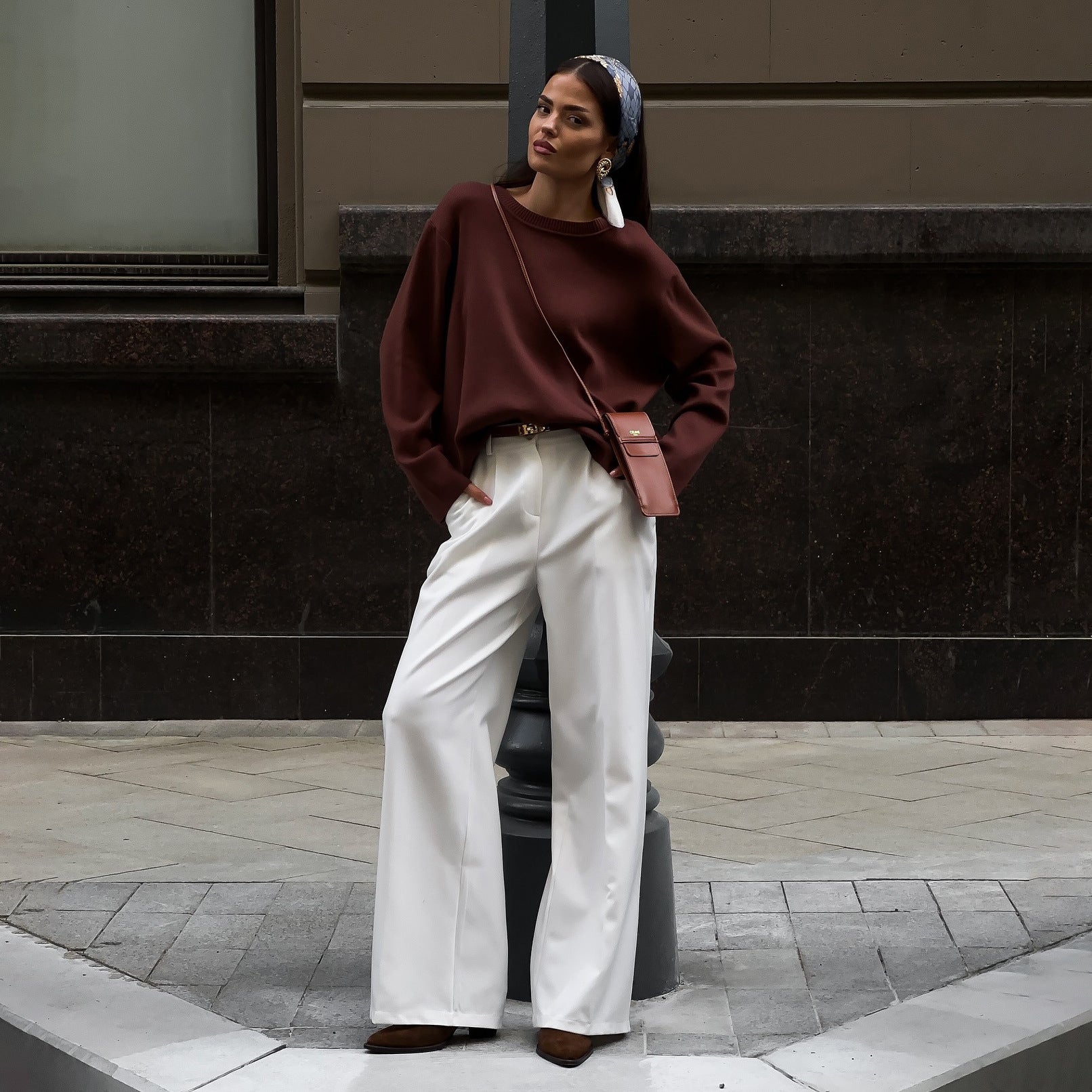 Discover our elegant set, consisting of a casual sweater made from soft and breathable material and chic, loose-fitting pants. Perfect for all occasions, this set combines comfort with a touch of chic for your wardrobe.