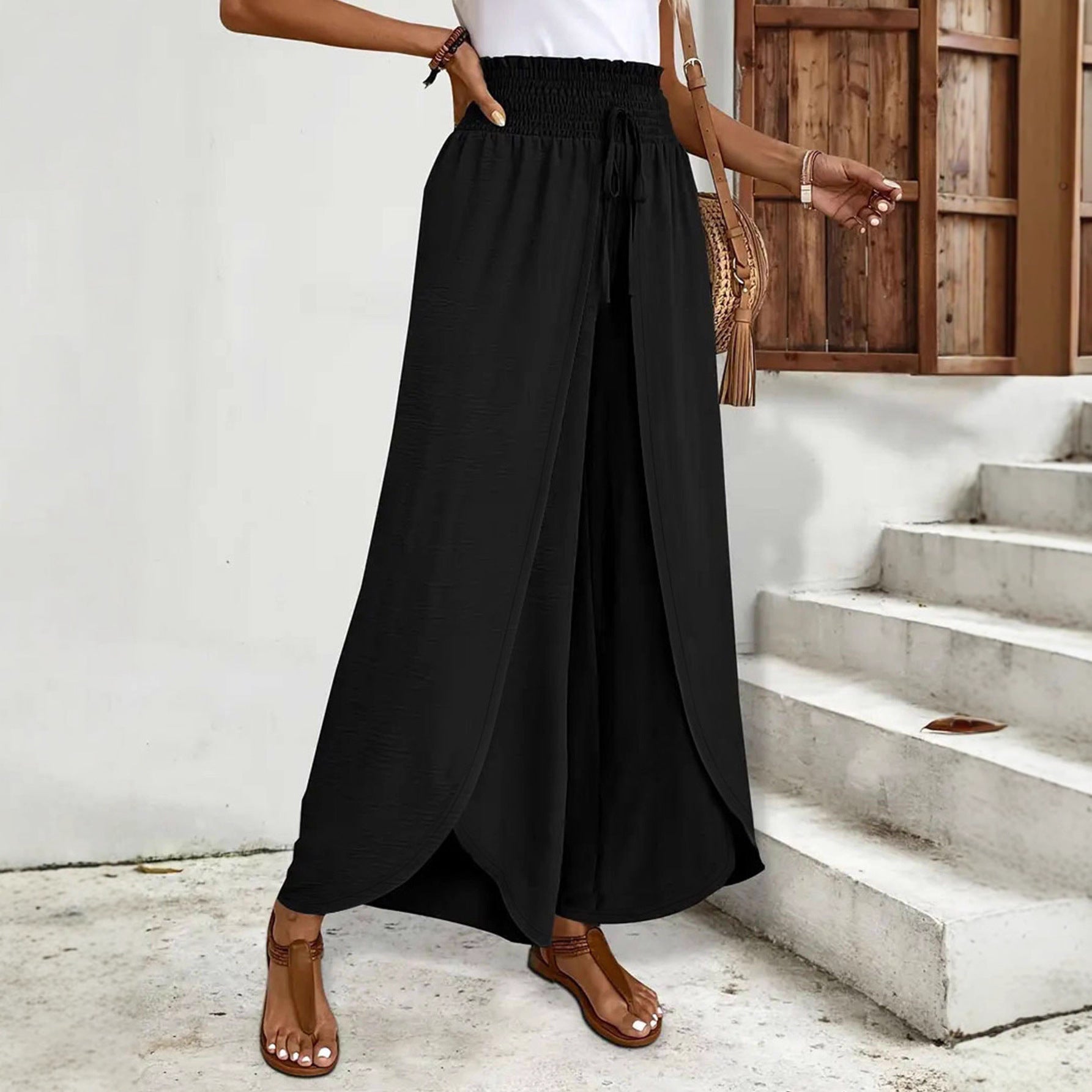 Palazzo pants for women with elastic waist and side slits Chic und Stil