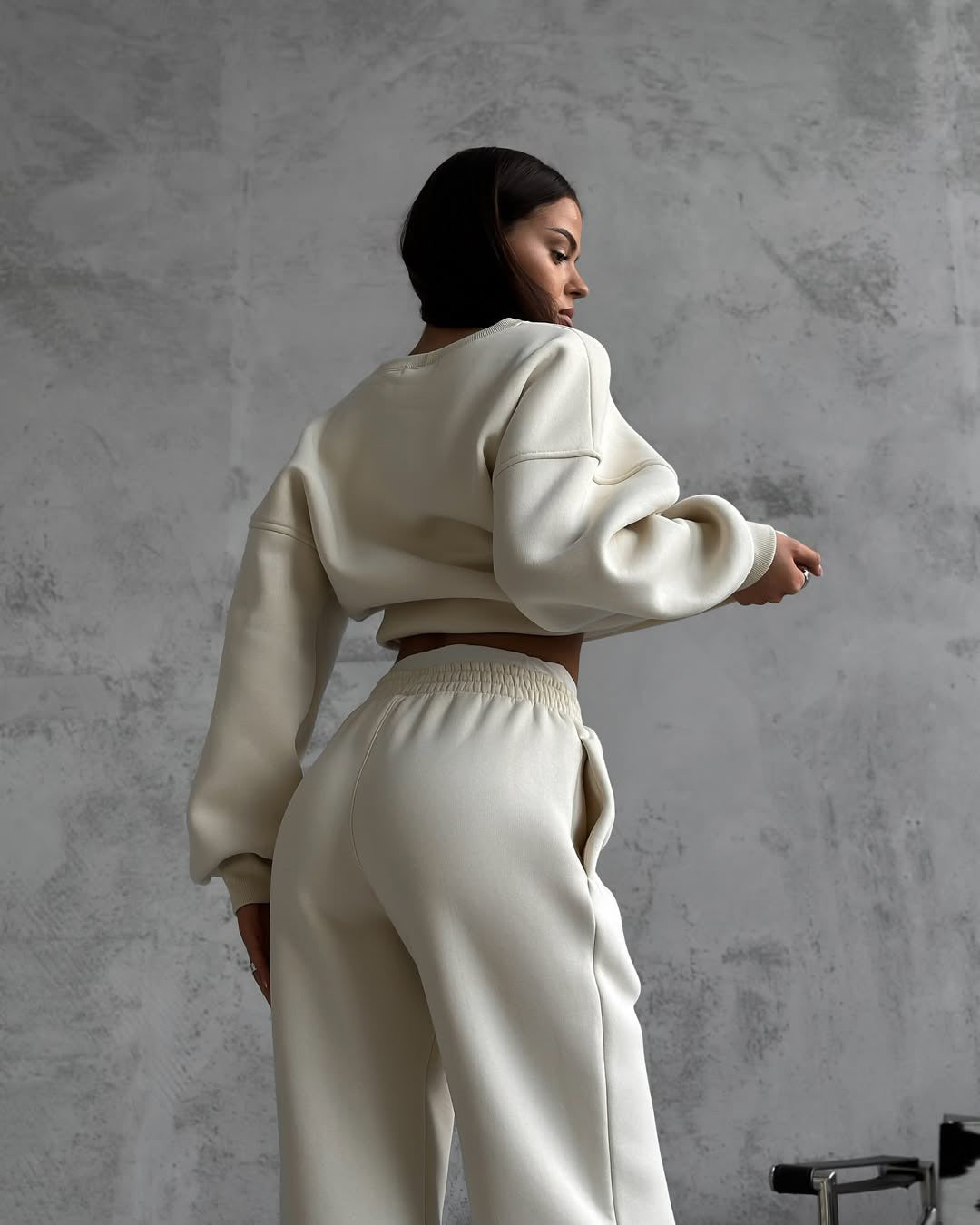 - Design: The set is distinguished by a cropped sweatshirt that pairs perfectly with the jogger pants to create a trendy silhouette.