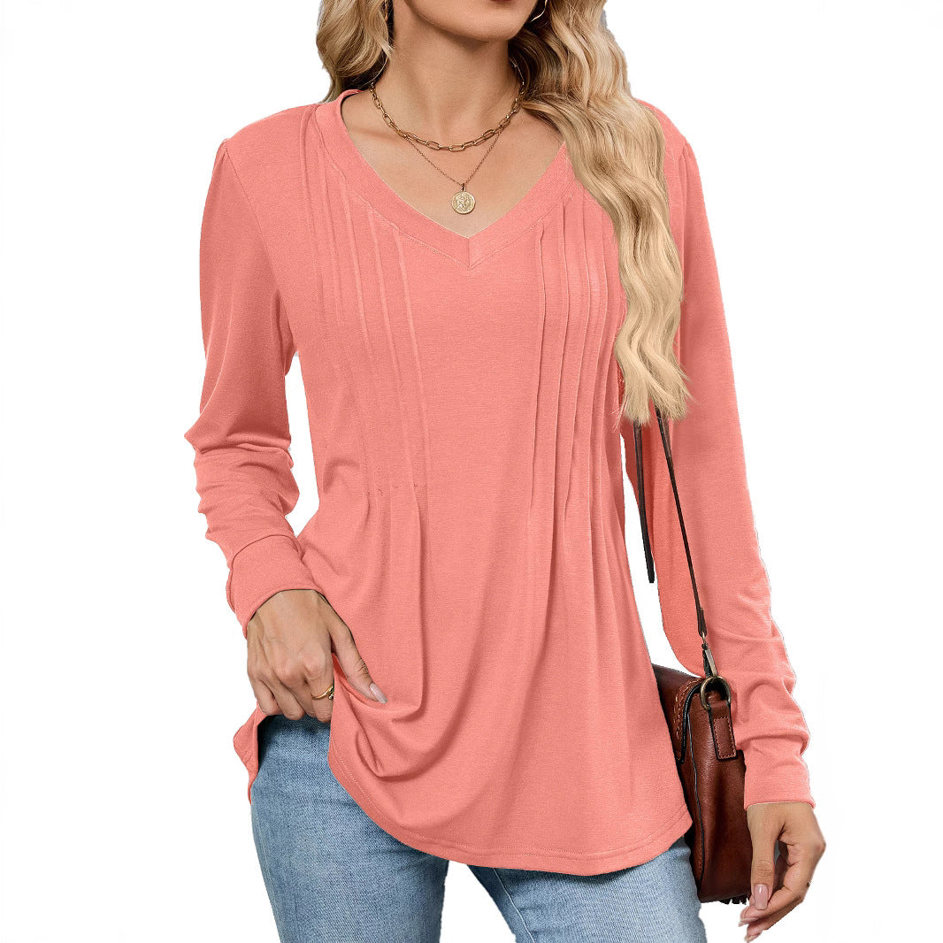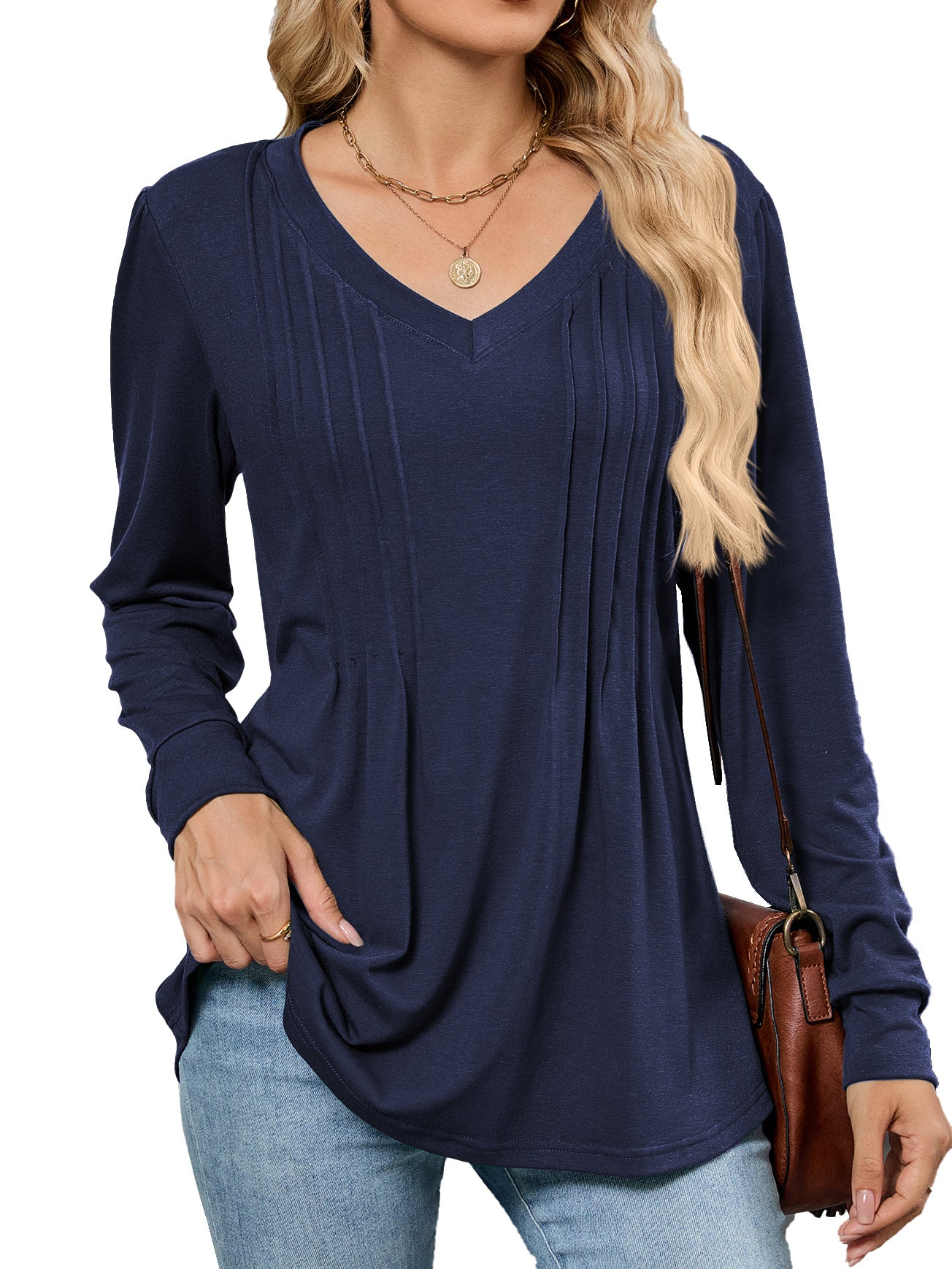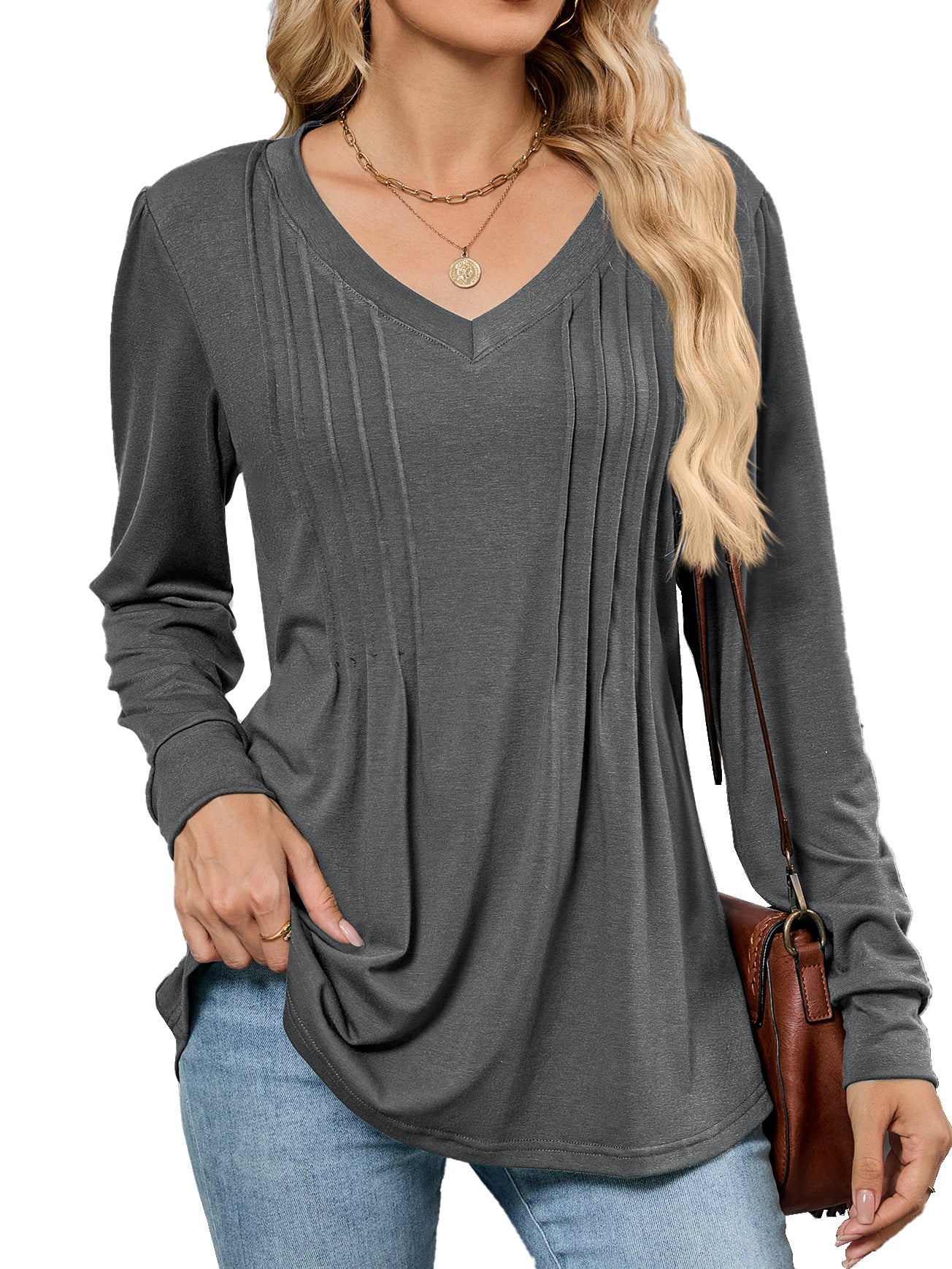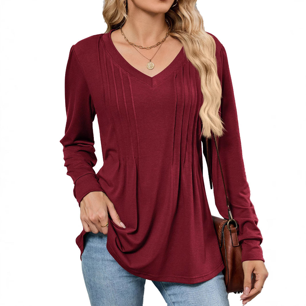 Découvrez notre élégant chemisier en viscose pour femmes, qui avec son design plissé raffiné et son décolleté en V flatteur, apporte une touche moderne. Ce haut allie confort et style – idéal pour un usage quotidien ou des occasions spéciales.