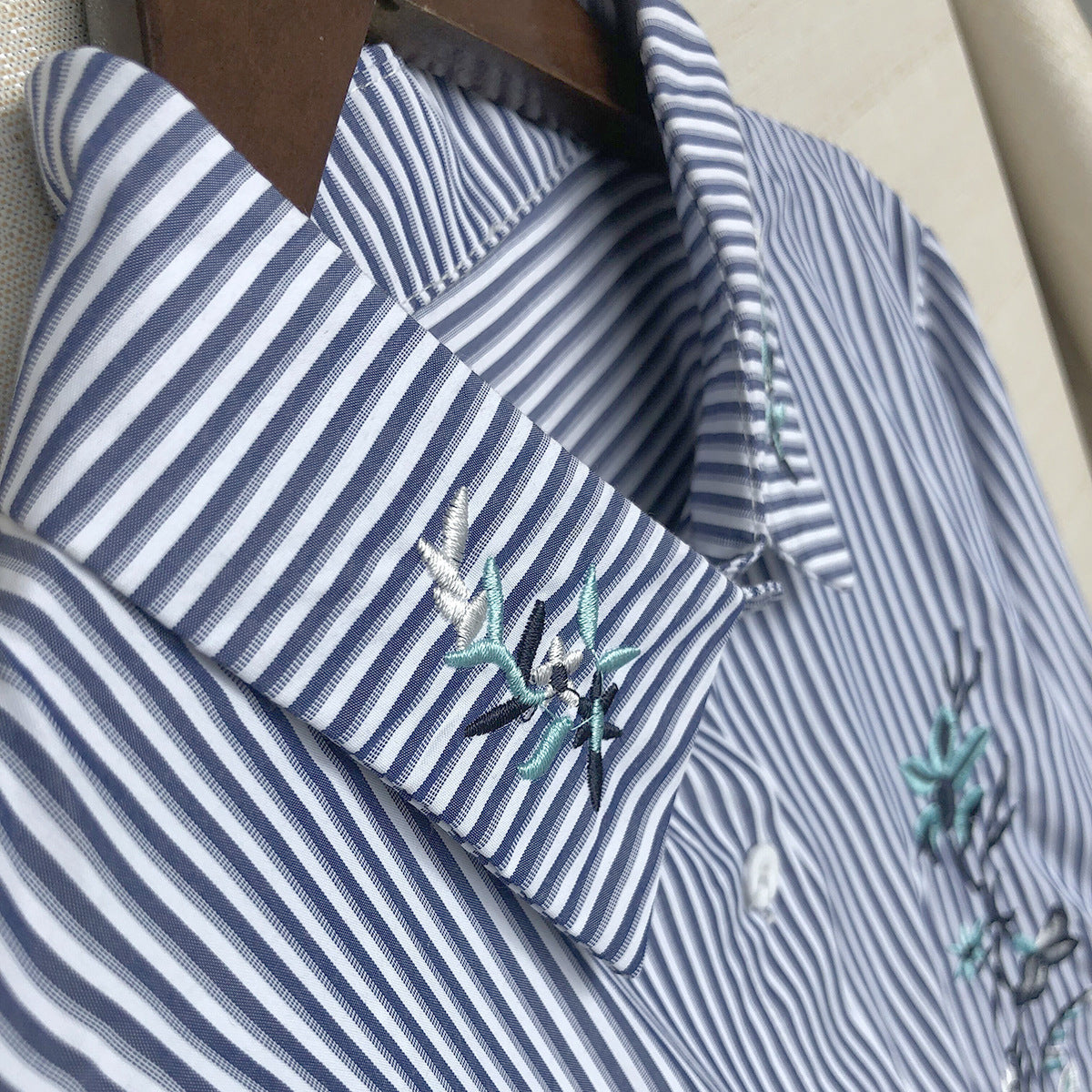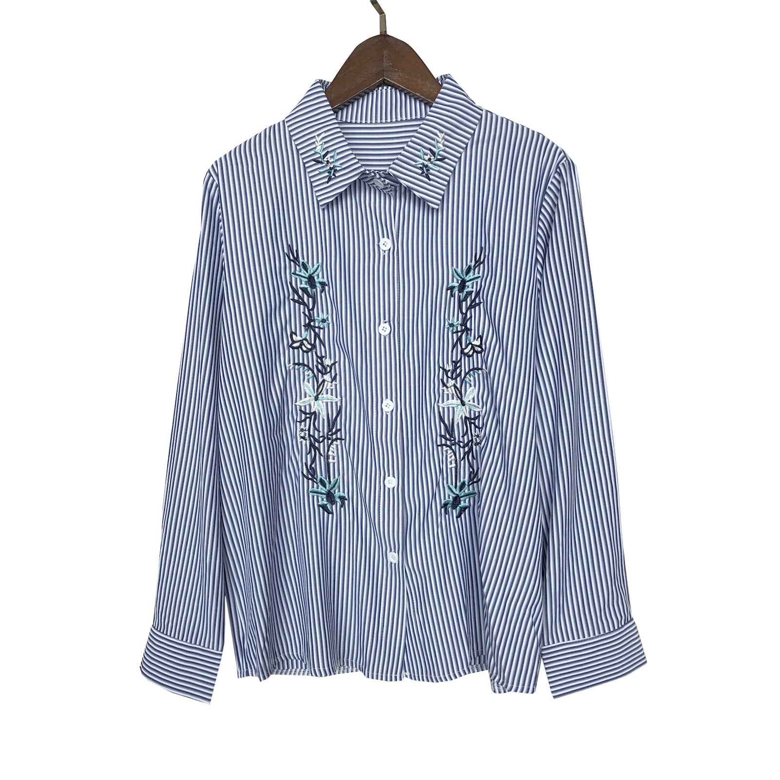 Chemise à boutons à rayures brodée pour femmes Chic und Stil