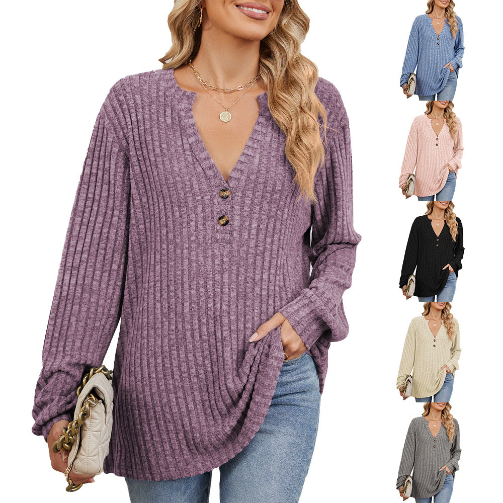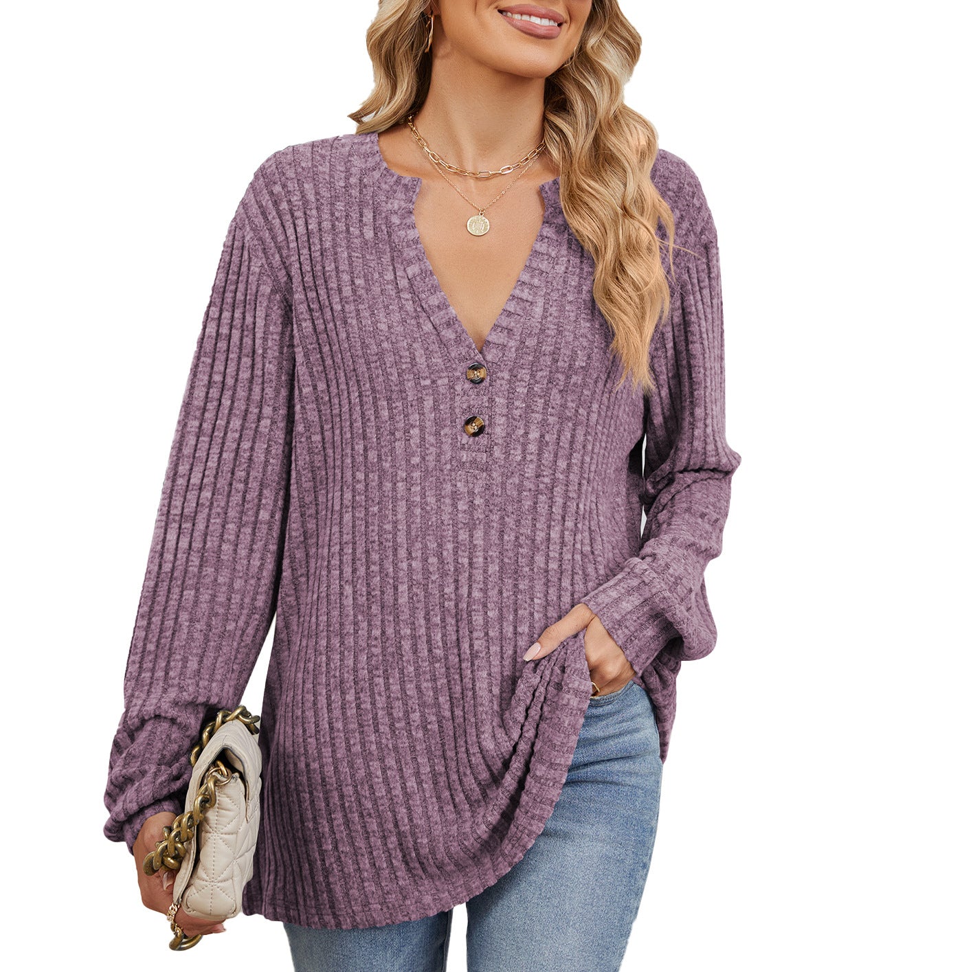 Chemisier à manches longues pour femmes avec décolleté en V texturé et détails de boutons Chic und Stil