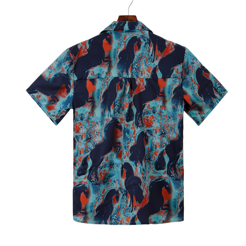 Découvrez notre chemise à manches courtes pour hommes, qui se distingue par son motif de cheval saisissant et la qualité en coton aérée. Cette chemise est idéale pour les journées chaudes et offre un look décontracté mais stylé.