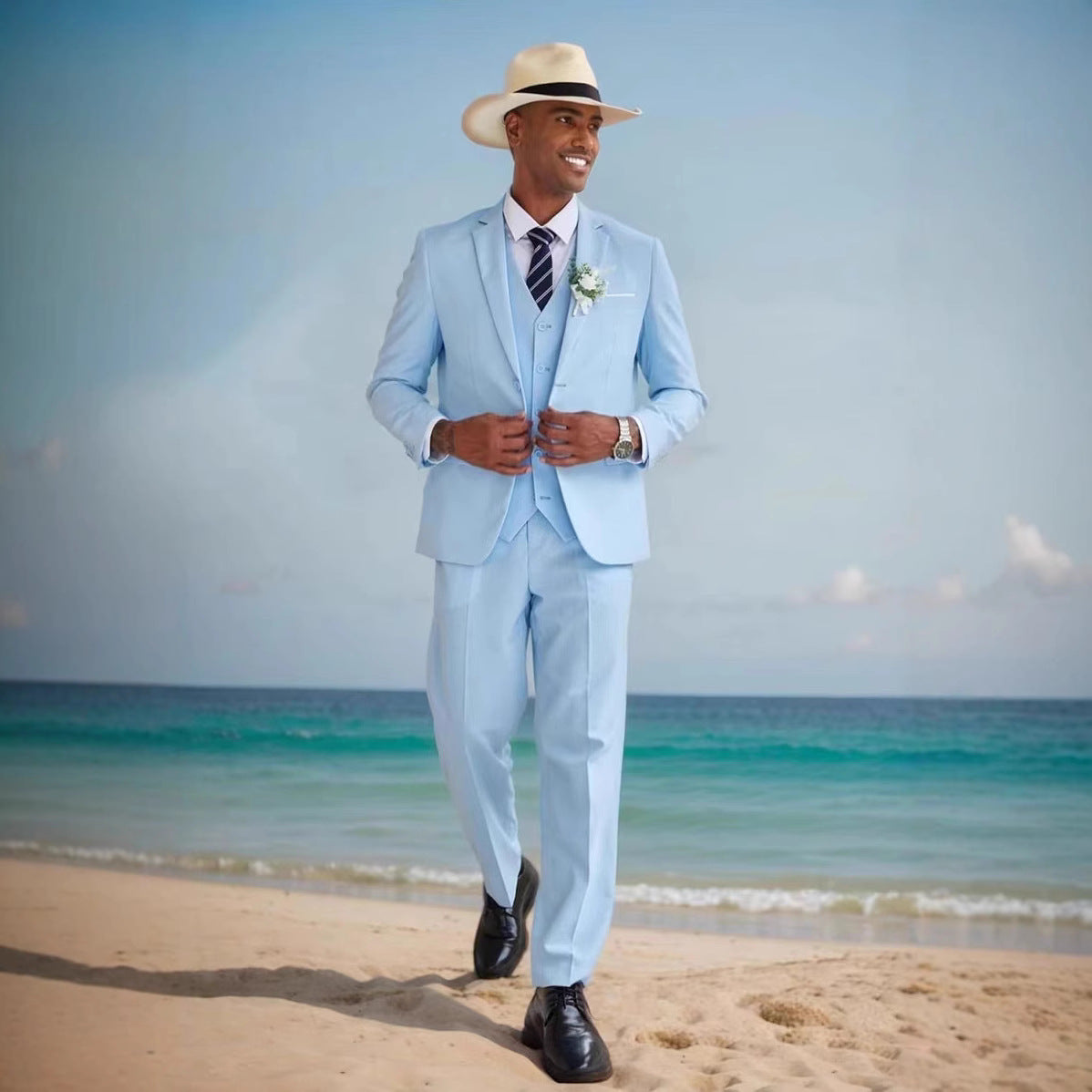 - Trois pièces : Comprend une veste, un gilet et un pantalon pour un look complet.