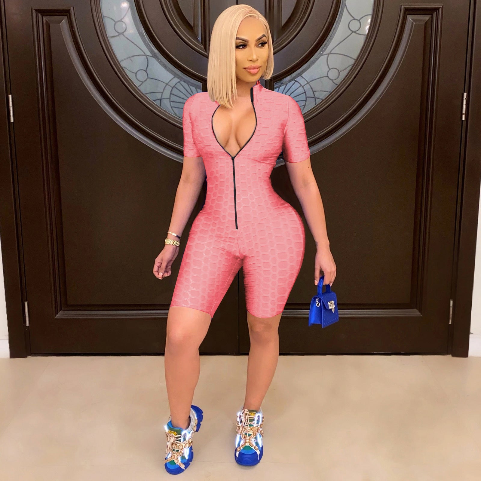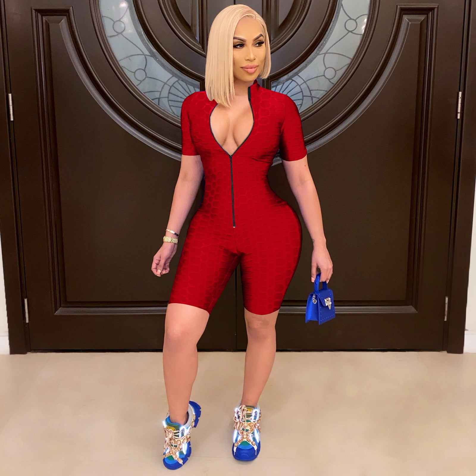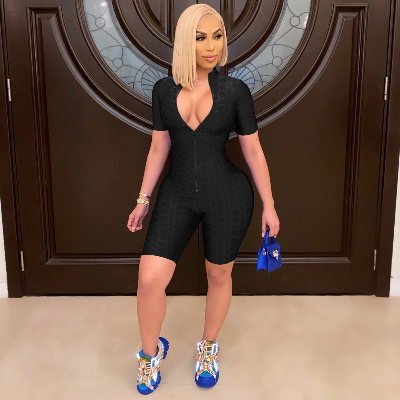- Design ergonomique : La coupe cintrée met en valeur vos courbes, tandis que la coupe courte et la fermeture éclair lui donnent un look moderne.