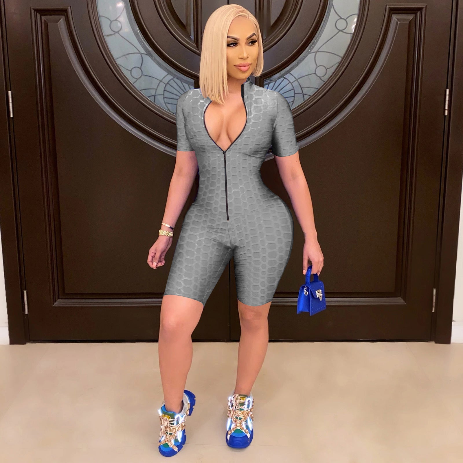 - Matériaux de haute qualité : La combinaison est fabriquée dans un tissu mélangé confortable et élastique qui épouse délicatement votre corps.