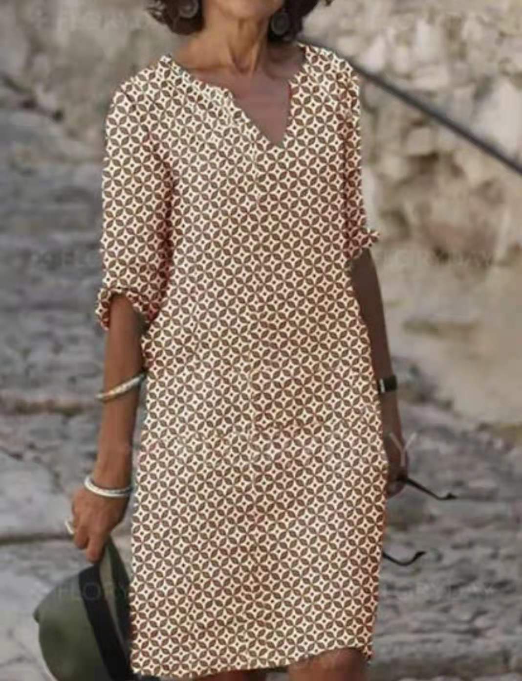 Robe midi décontractée pour femmes avec décolleté en V et boutons pratiques Chic und Stil