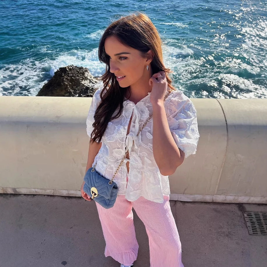Chemisier pour femmes avec motif floral brodé et détails romantiques en volants Chic und Stil