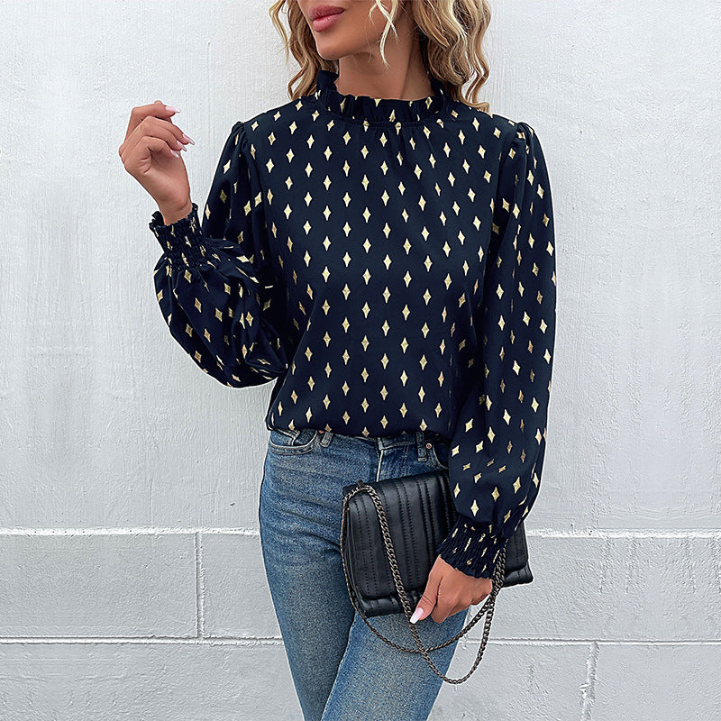 Chemisier élégant pour femmes avec des imprimés à la mode et des manches ballons Chic und Stil