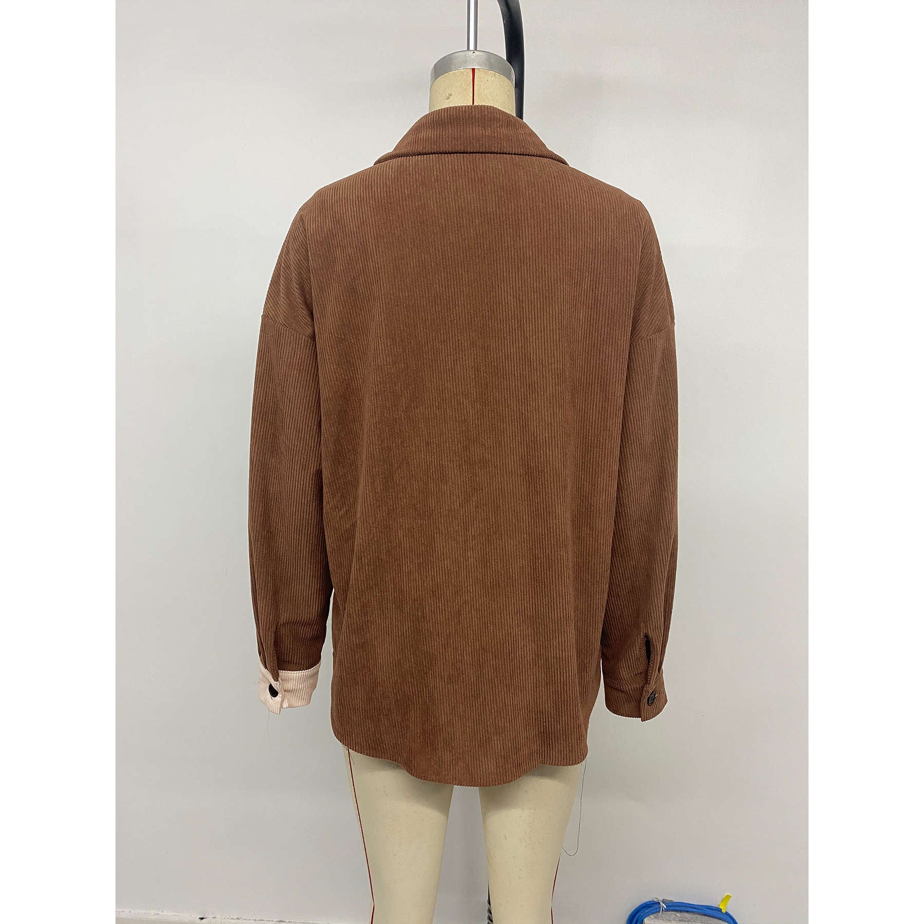 Chemise en velours côtelé pour femmes avec un design de blocs de couleurs à la mode et un caractère sportif Chic und Stil