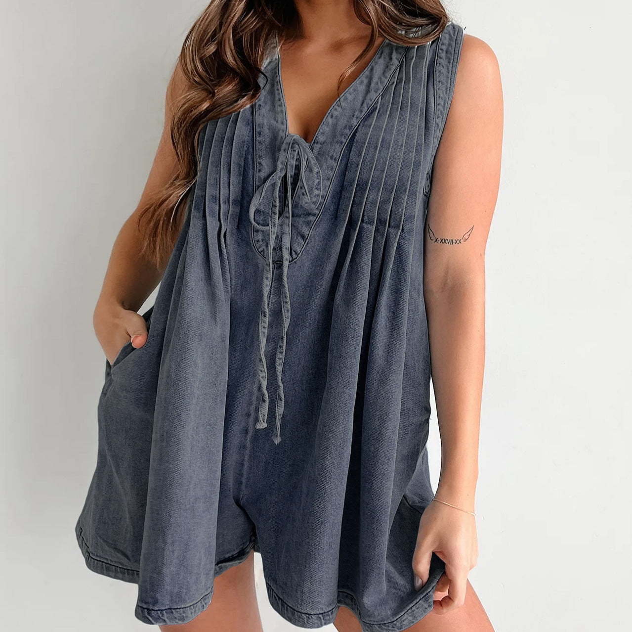 Découvrez notre combinaison décontractée pour femmes avec des plis élégants qui allie style et confort. Cette combinaison à la mode est parfaite pour les journées chaudes et offre de nombreuses possibilités de port, que ce soit pour une journée décontractée ou une occasion spéciale.