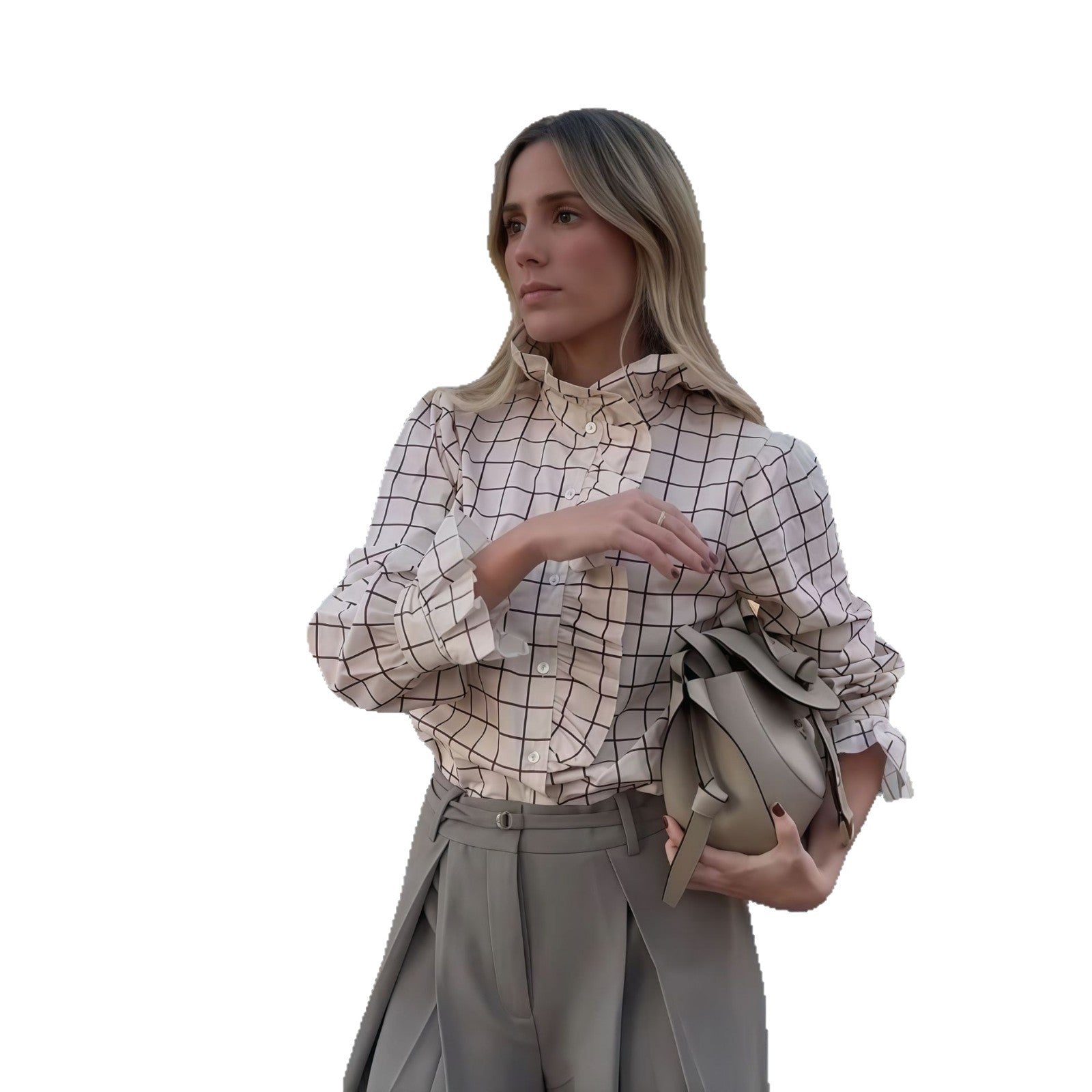 Chemisier à carreaux pour femmes avec des détails froncés élégants Chic und Stil