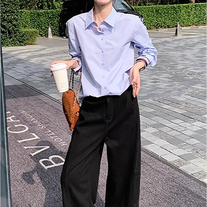 Chemise décontractée pour femmes à boutons avec poignets contrastés Chic und Stil