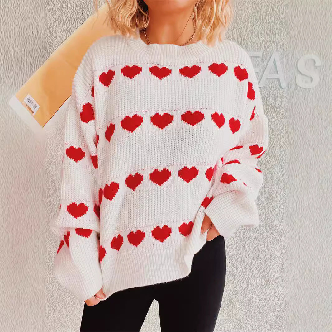 Découvrez notre charmant pull en tricot pour femmes, orné d'un motif de cœur plein d'amour. Ce pull confortable allie style et confort, et est parfait pour diverses occasions.
