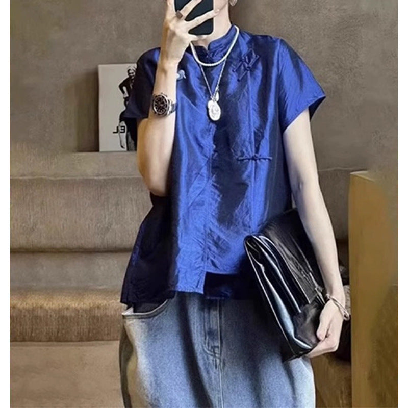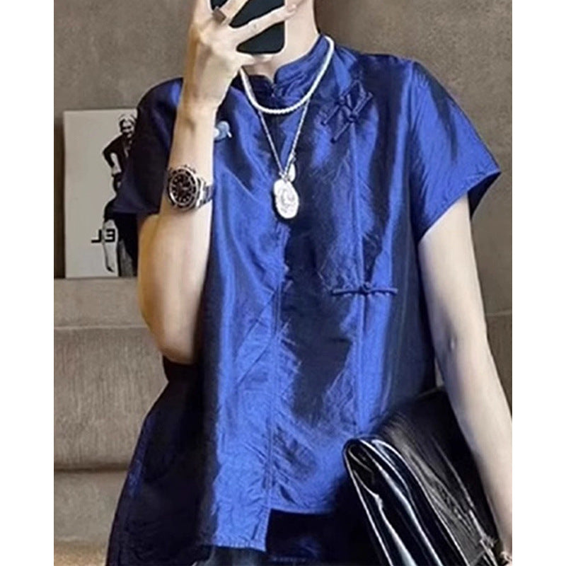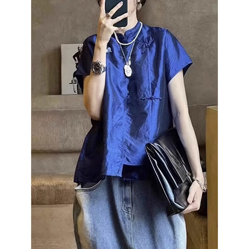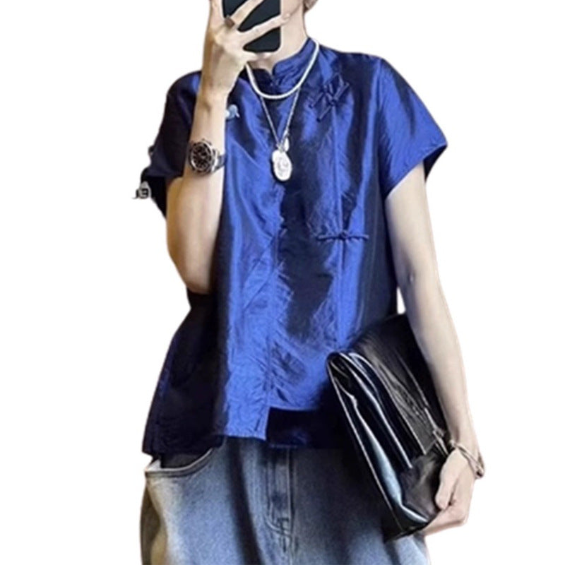 Blouse Décontractée avec Col Mandarin pour Femmes