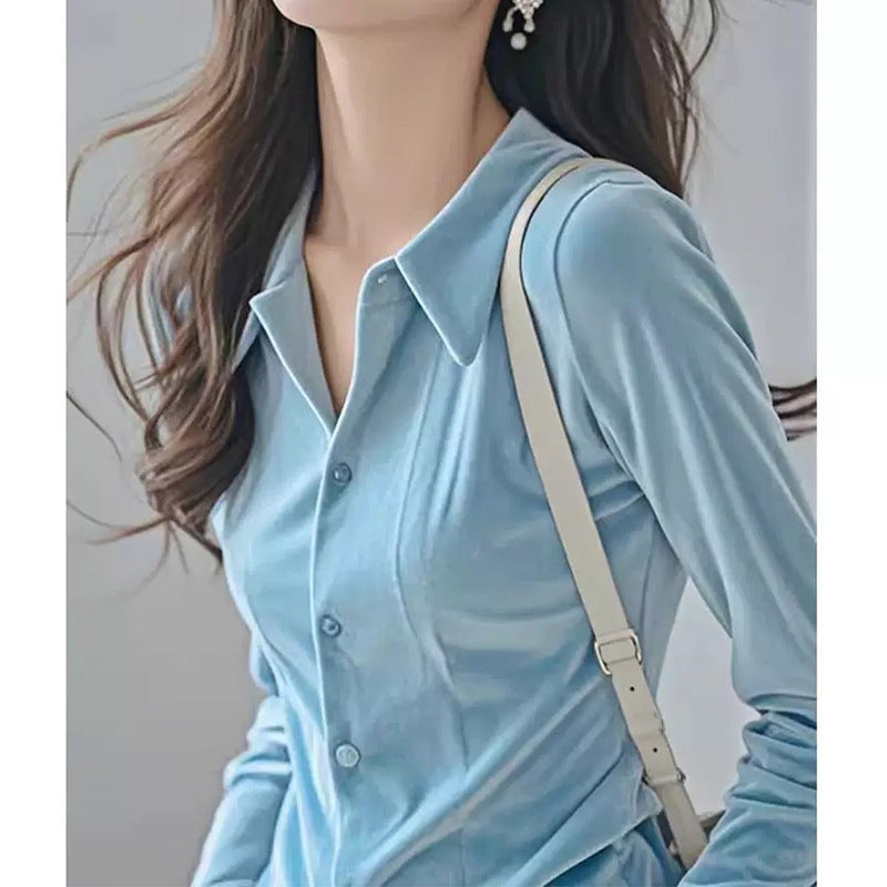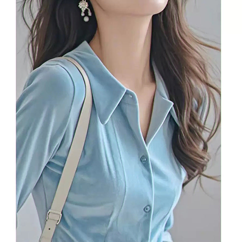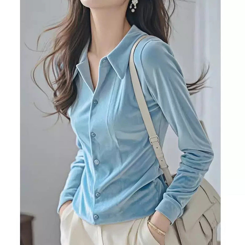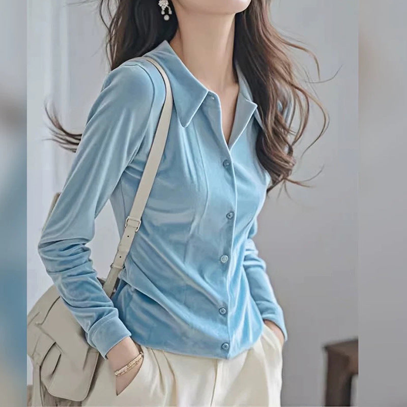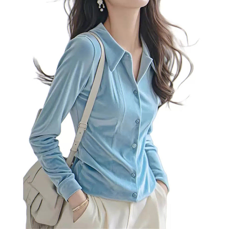 Chemise Boutonnée en Velours Luxe pour Femmes Chic und Stil