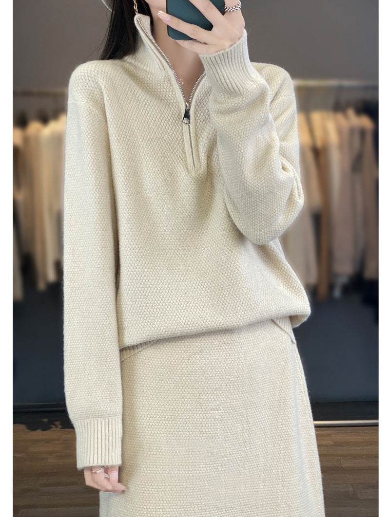 Pull en tricot pour femmes avec col montant et fermeture éclair Chic und Stil