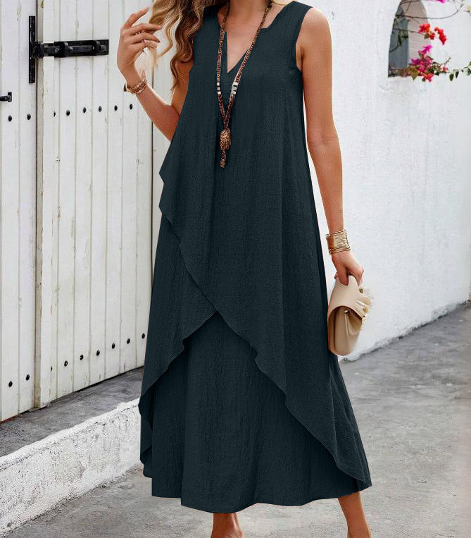 Découvrez la robe d'été parfaite ! Cette robe maxi pour femmes allie élégance et confort, idéale pour toutes les occasions. Avec son volant superposé et son décolleté en V moderne, elle assure un look unique.