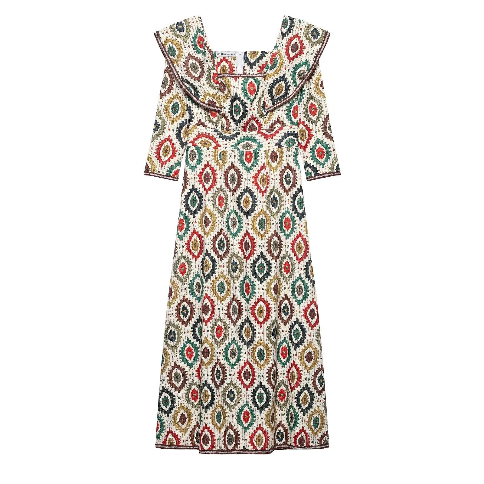 Robe midi pour femmes avec un mélange de motifs élégant et un col volumineux Chic und Stil