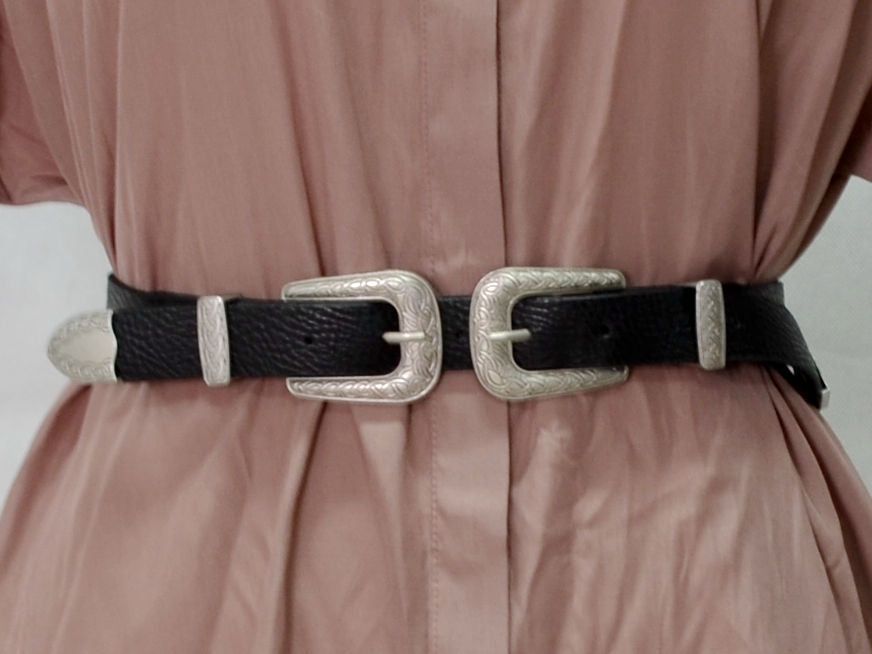 Ceinture à double boucle et design texturé pour femme Chic und Stil
