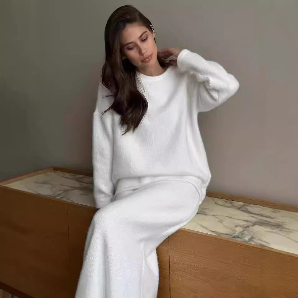 Découvrez le Set de Tricot Douillet pour Femmes avec une coupe large de Chic und Stil, qui représente un confort maximal et un design élégant. Cet ensemble se compose d'un pull ample et décontracté et d'une jupe longue et fluide, parfaits pour des journées relaxantes à la maison ou des sorties décontractées en ville.