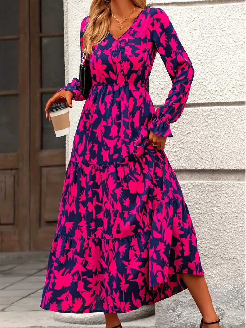 Cette magnifique robe maxi pour femmes de Chic und Stil est le compagnon parfait pour des occasions joyeuses ou une journée relaxante en plein air. Avec son décolleté en V moderne et ses manches voluminous décontractées, elle allie élégance et confort.