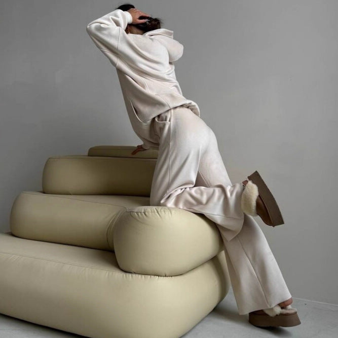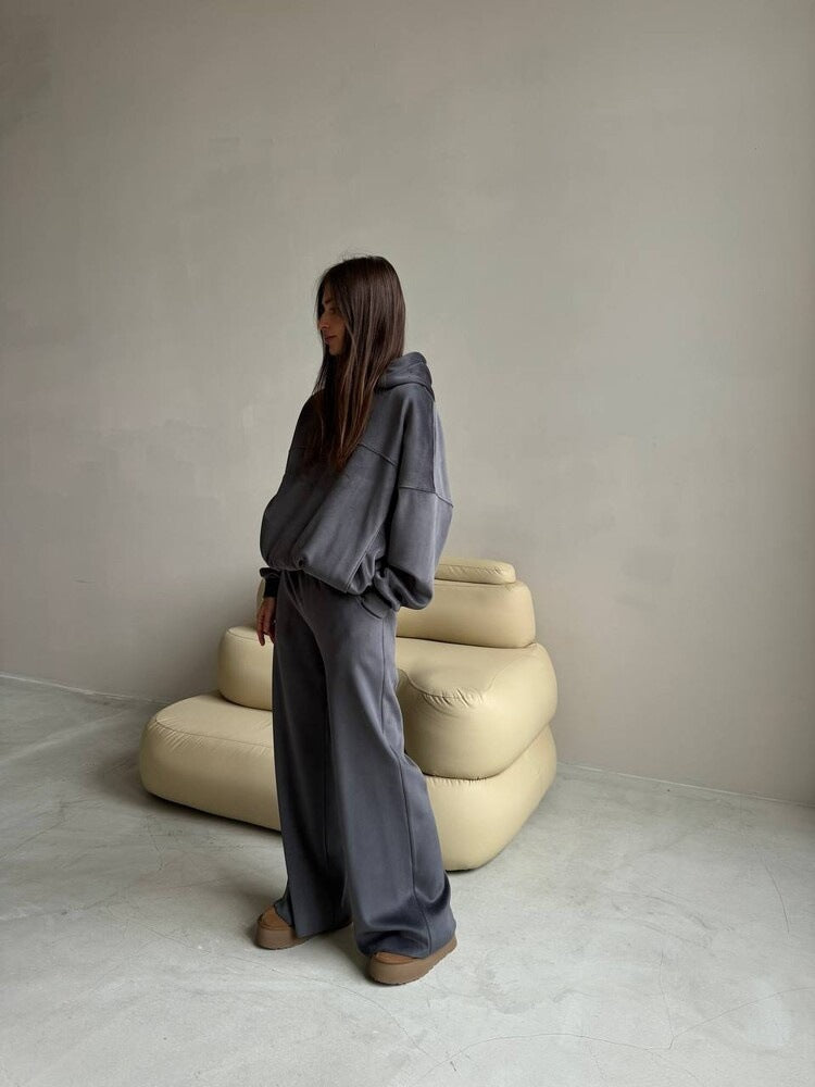 Découvrez l'ensemble parfait pour les journées décontractées : notre hoodie premium confortable et le pantalon ample de Chic und Stil. Cet ensemble allie style et confort, idéal pour les activités de loisirs ou les soirées détendues à la maison.