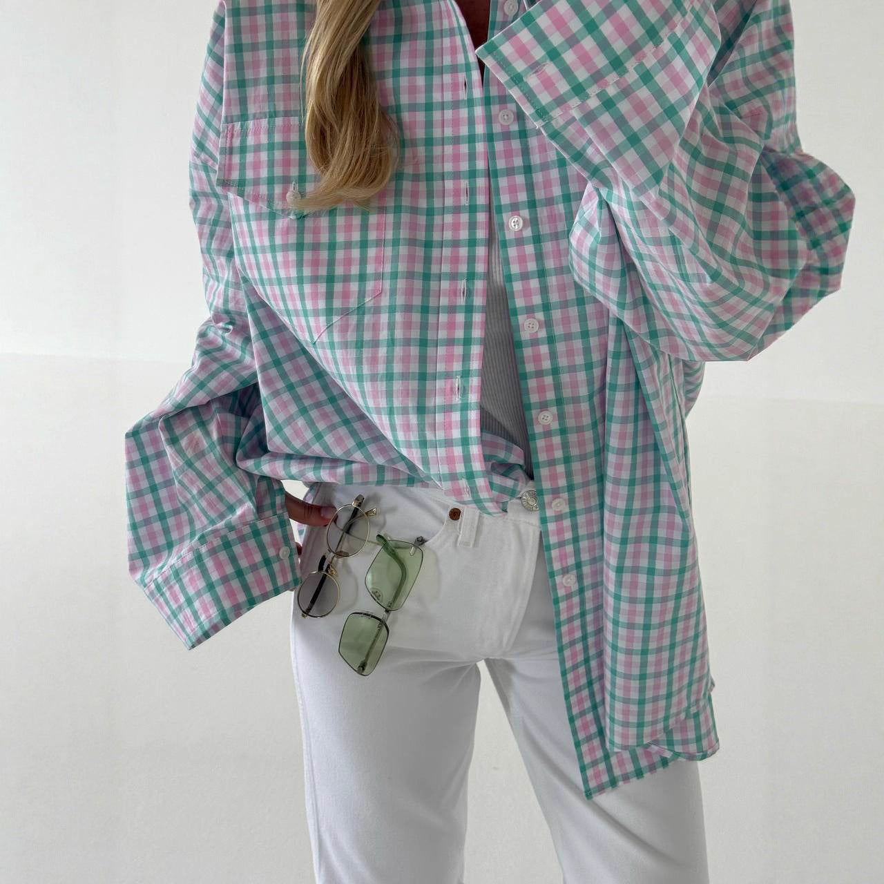 Chemisier à carreaux décontracté pour femmes en coton avec une coupe généreuse Chic und Stil