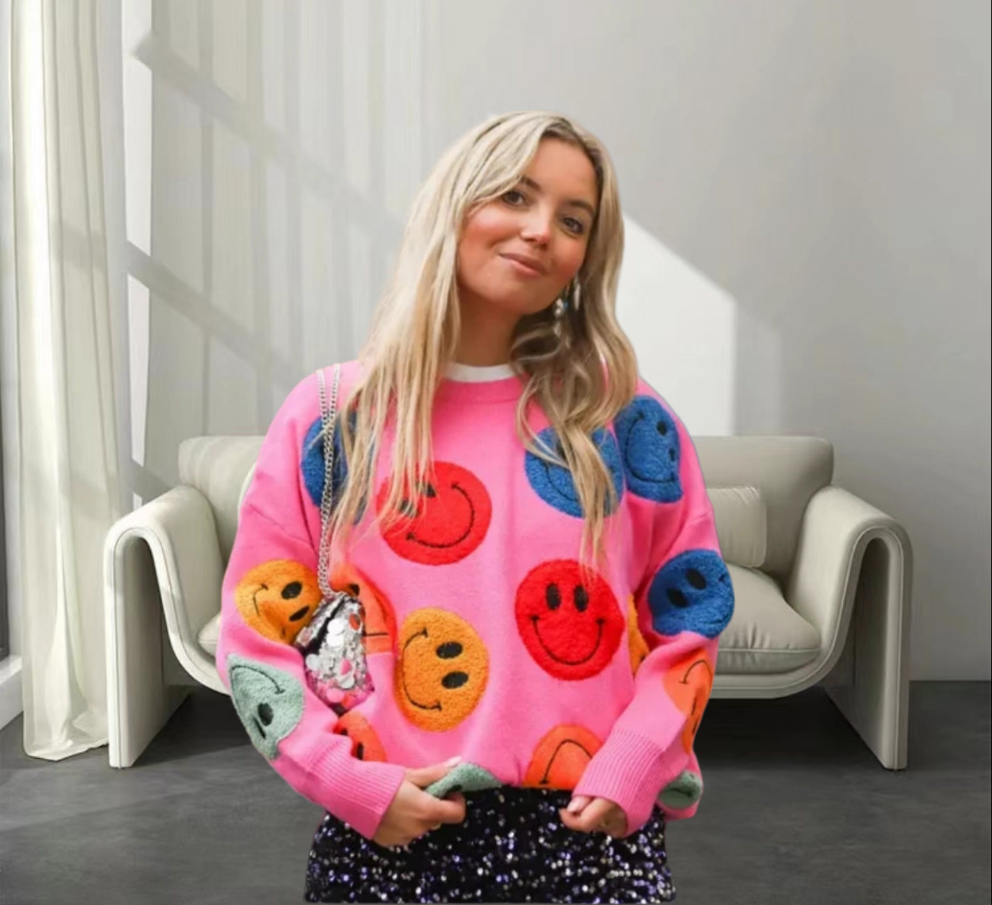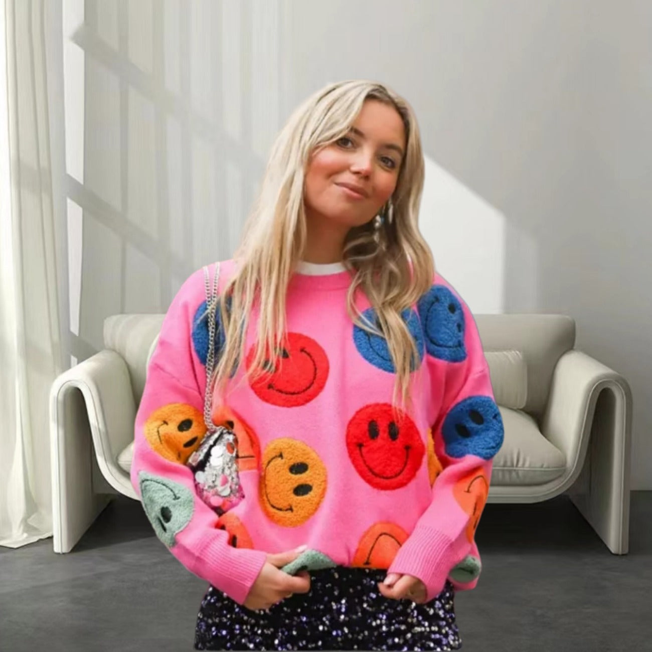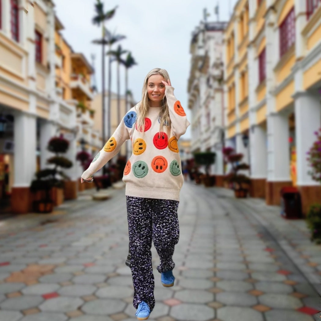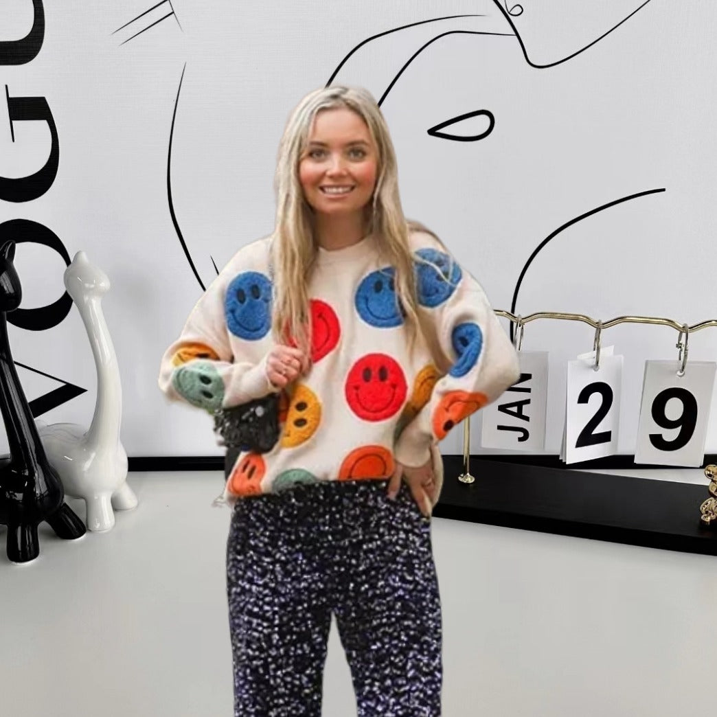 Découvrez le Pull Décontracté pour Femmes de Chic und Stil – un vêtement indispensable pour toute femme soucieuse de sa mode. Ce pull allie confort et style avec un design unique et joyeux de smiley qui répand instantanément de la bonne humeur. Le mélange de matériaux doux et de haute qualité assure une sensation agréable sur la peau et vous garde au chaud lors des journées plus fraîches.