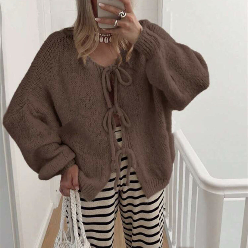 - Design particulier : Avec son laçage créatif et sa coupe volumineuse tendance, le pull est à la fois ludique et élégant.