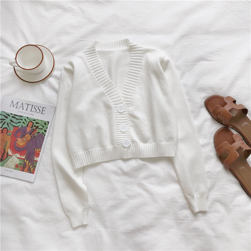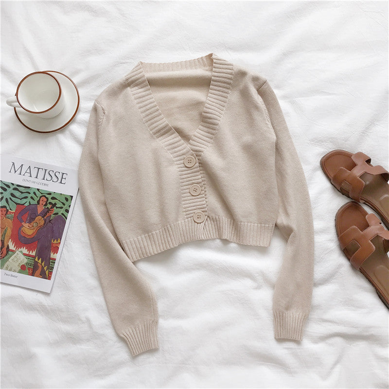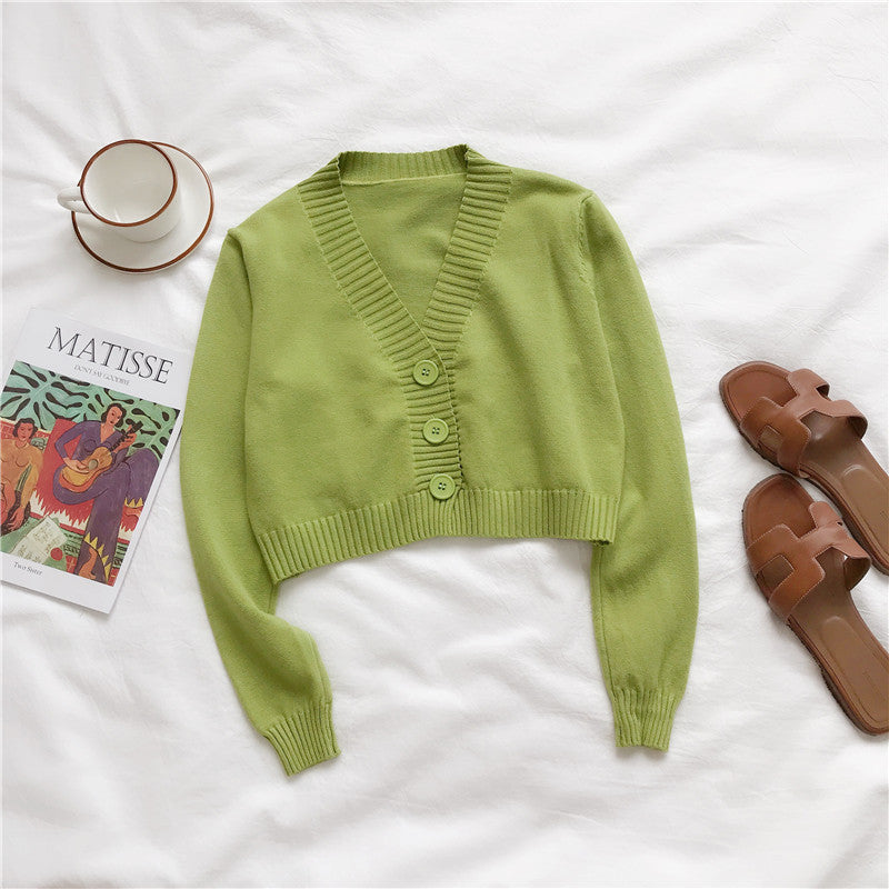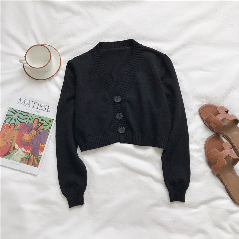 Dames gilet court en tricot avec décolleté en V et détails de boutons Chic und Stil