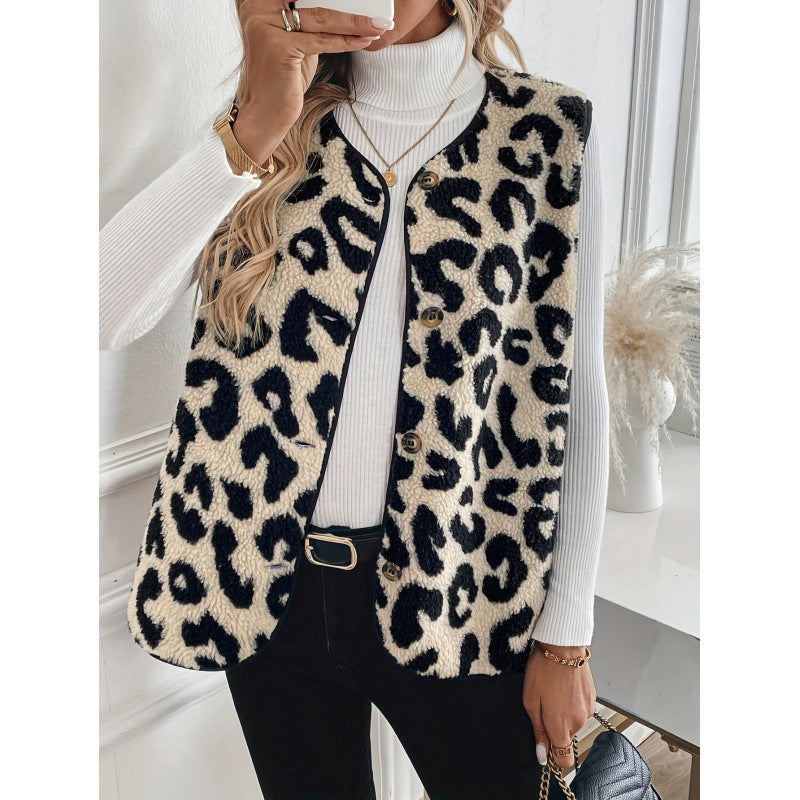 Dames Gilet Douillet avec Motif Léopard Chic und Stil