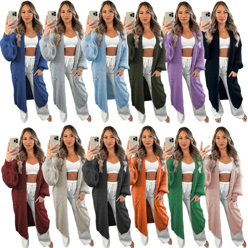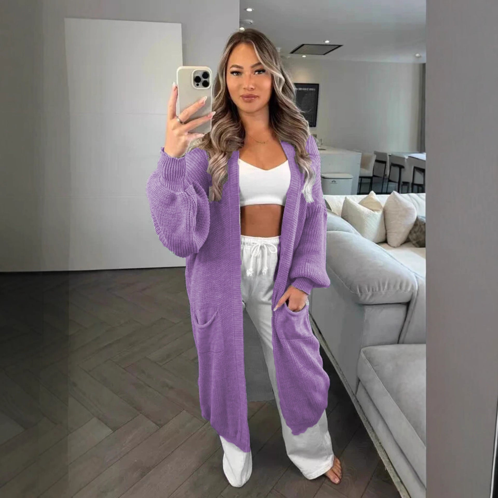 Dames Grande manteau en tricot avec manches longues et poches pratiques Chic und Stil